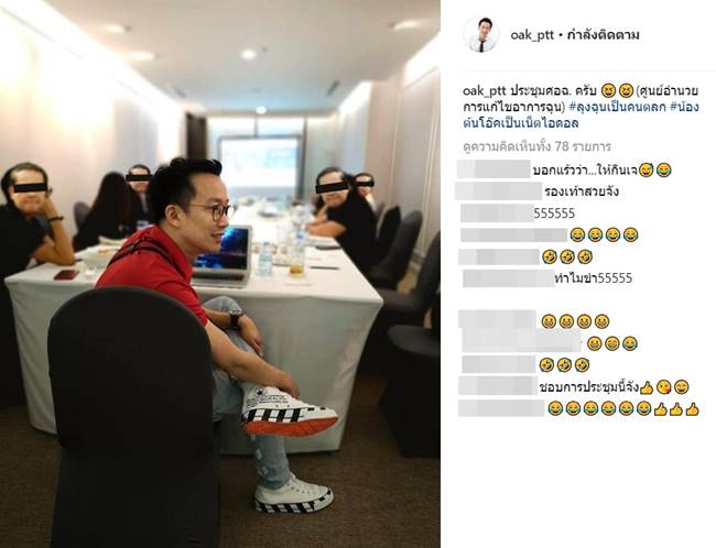 อินสตาแกรมของ โอ๊ค พานทองแท้ ได้มีการโพสต์ภาพตัวเองขณะกำลังประชุมกับคนอื่น ๆ