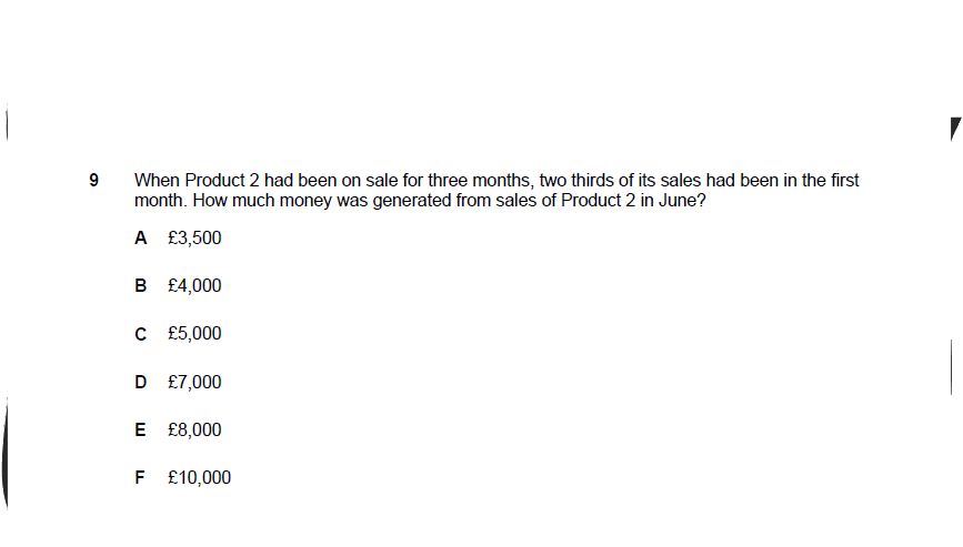 ดังนั้น ยอดขาย Jun จะเท่ากับ 800 - 450 = 350 ชิ้น ครับ