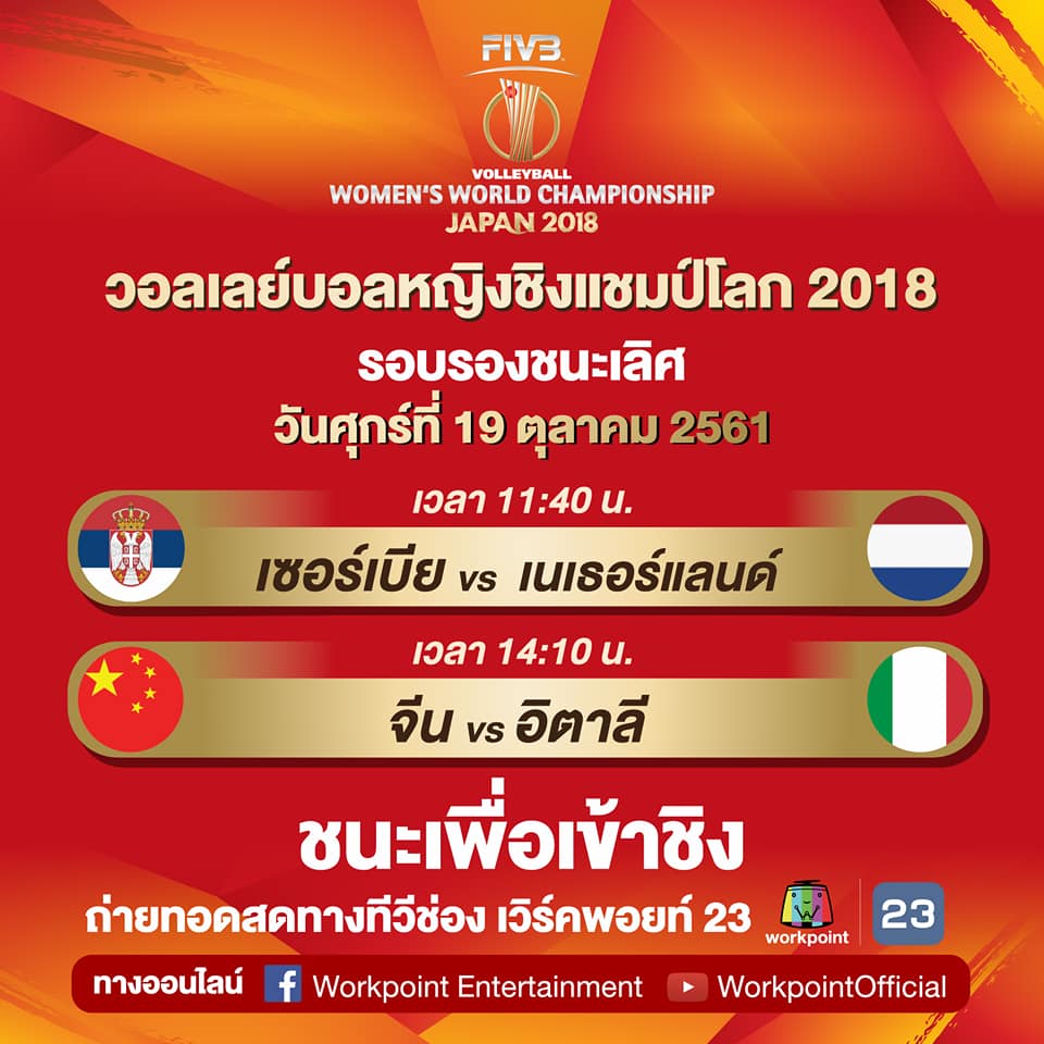 ตารางถ่ายทอดสดรอบรองชนะเลิศทางช่องเวิร์คพอยท์ ถ่ายทอดสดชิงอันดับ 5 ด้วยครับ
