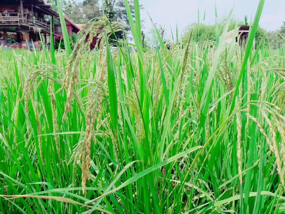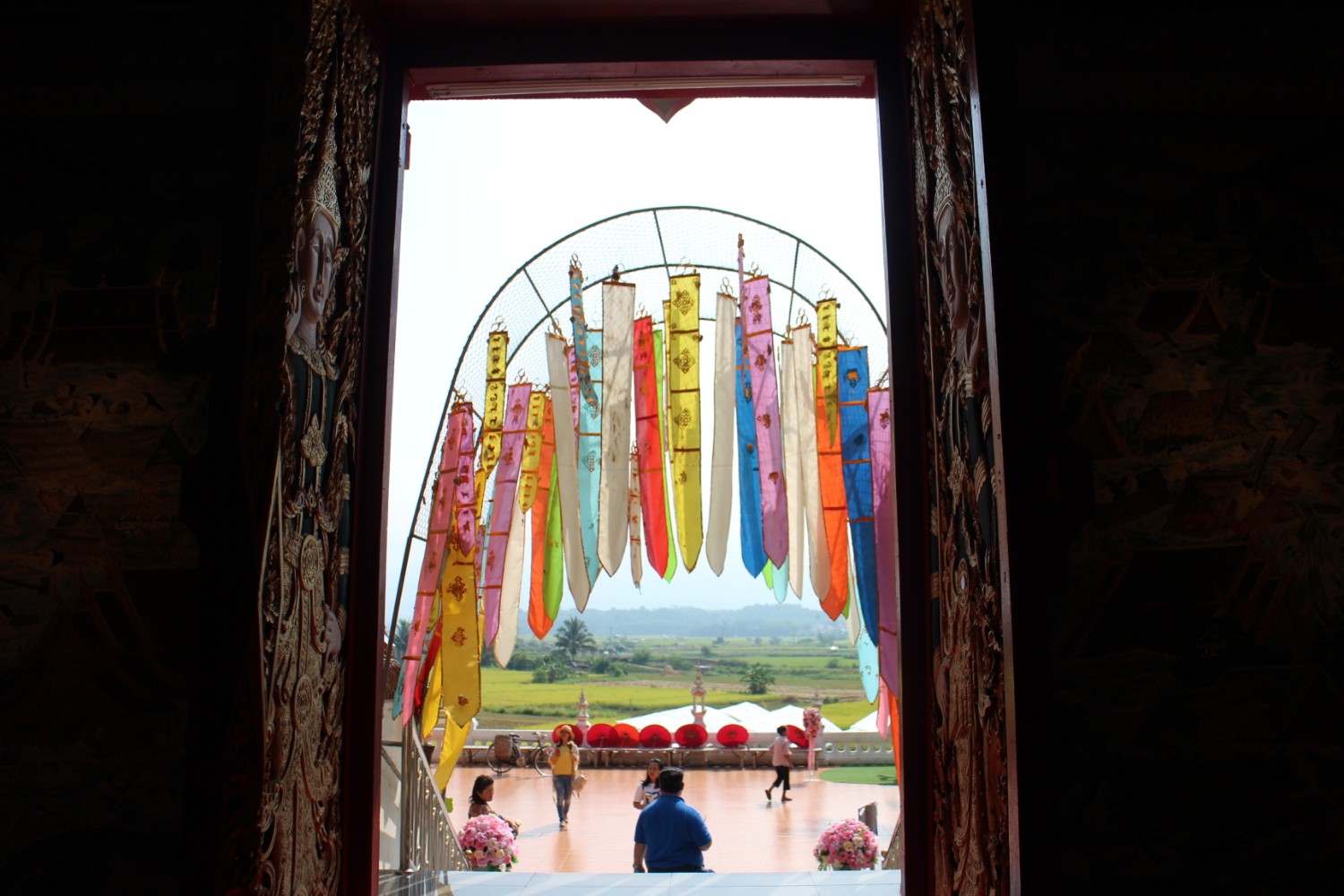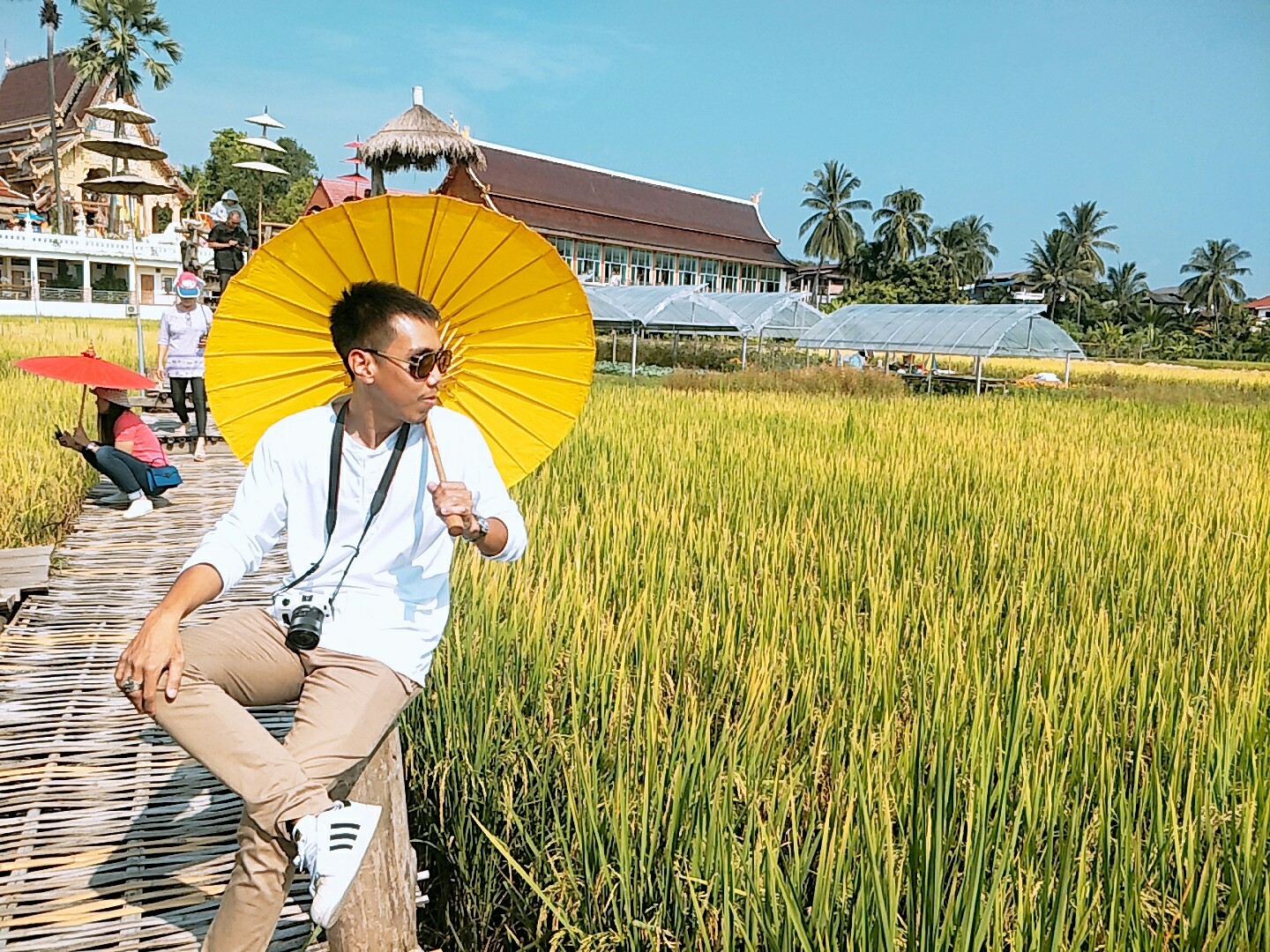 สถานที่ที่ 2 วัดภูเก็ต เราแวะไหว้พระ มีกิจกรรมให้หล่อเทียนพรรษา มีไอศกรีมมะพร้าวขายอยู่หน้าวัด ด้านหลังวัดมีทุ่งข้าวเหลืองอร่าม สามารถเดินลงไปข้างล่างได้ หรือจะขับรถไปก็ได้ มันเป็นสถานที่ที่ขึ้นชื่ออีกแห่ง ฮักนาไทลื้อ นั่นเอง เราแวะให้อาหารปลาด้านหลังวัด มันจะเป็นการเทอาหารปลาลงไปตามท่อ PVC จะเห็นทันทีที่บ่อปลาเลยว่า น้องปลามาดุ๊บๆกินอาหารกัน