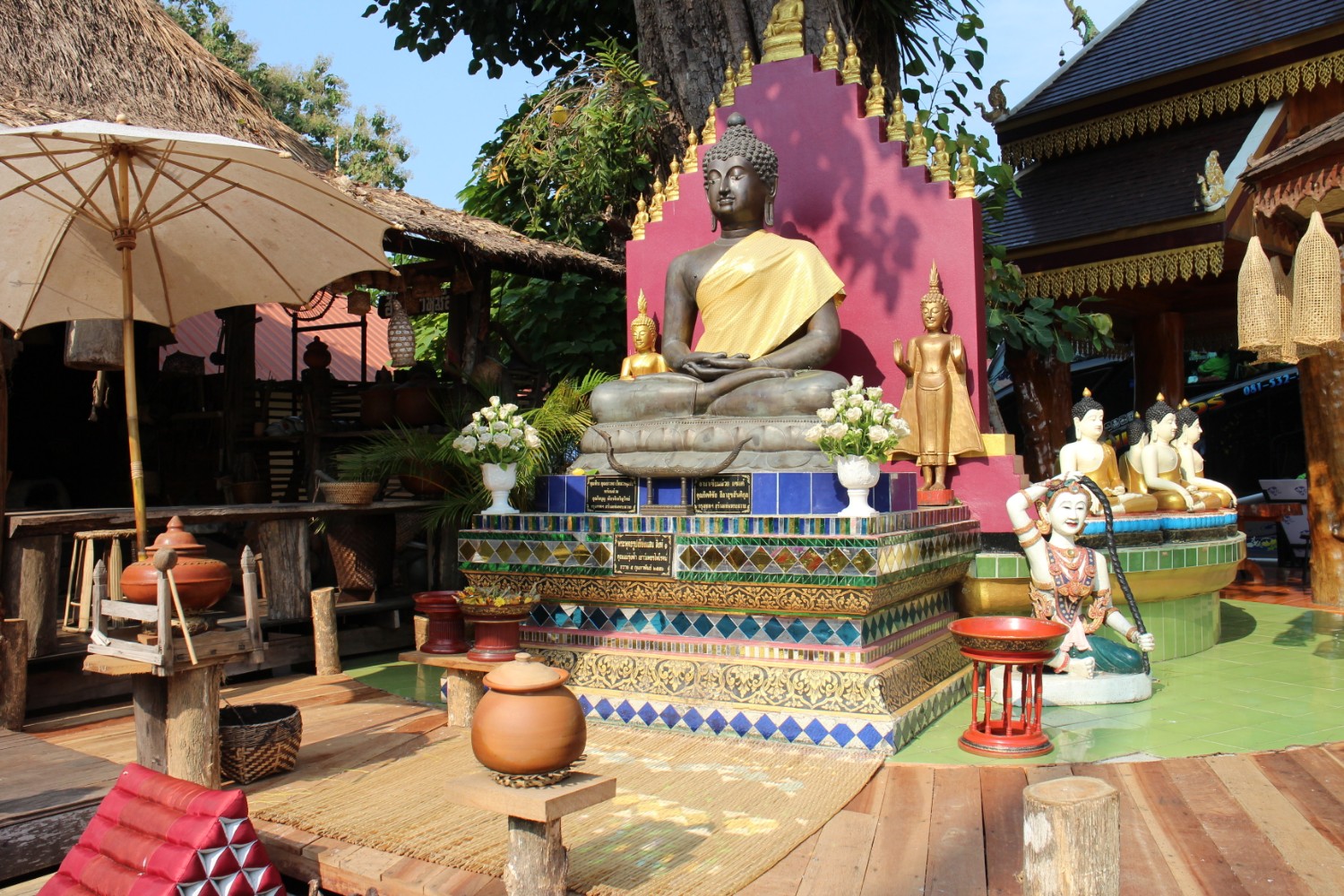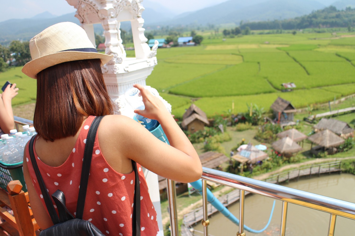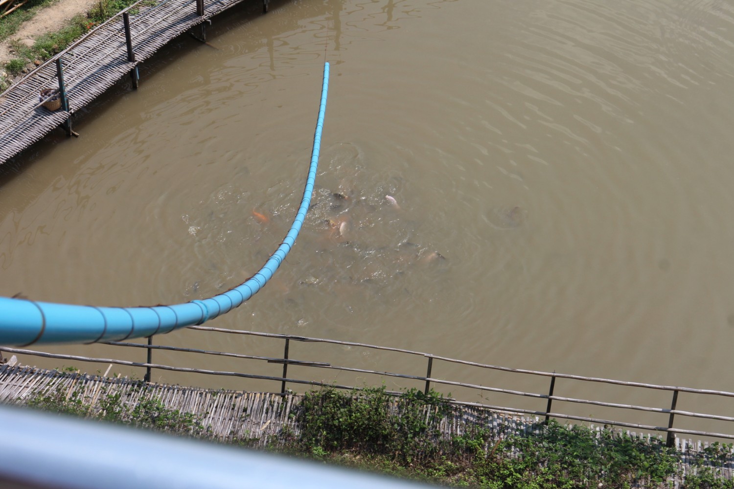 สถานที่ที่ 2 วัดภูเก็ต เราแวะไหว้พระ มีกิจกรรมให้หล่อเทียนพรรษา มีไอศกรีมมะพร้าวขายอยู่หน้าวัด ด้านหลังวัดมีทุ่งข้าวเหลืองอร่าม สามารถเดินลงไปข้างล่างได้ หรือจะขับรถไปก็ได้ มันเป็นสถานที่ที่ขึ้นชื่ออีกแห่ง ฮักนาไทลื้อ นั่นเอง เราแวะให้อาหารปลาด้านหลังวัด มันจะเป็นการเทอาหารปลาลงไปตามท่อ PVC จะเห็นทันทีที่บ่อปลาเลยว่า น้องปลามาดุ๊บๆกินอาหารกัน