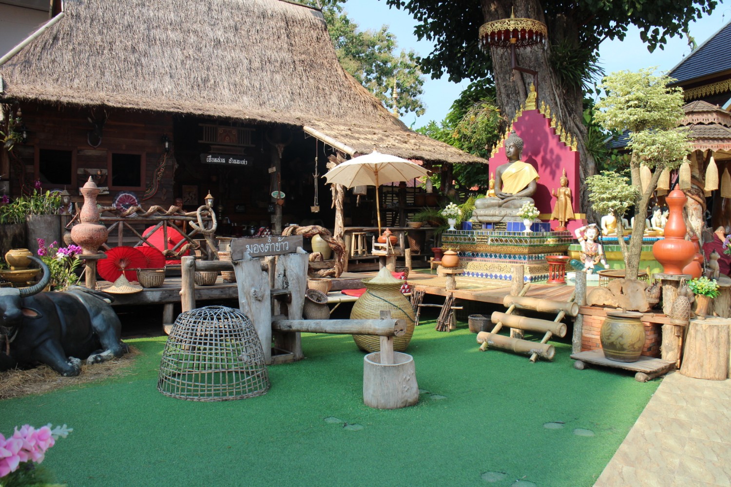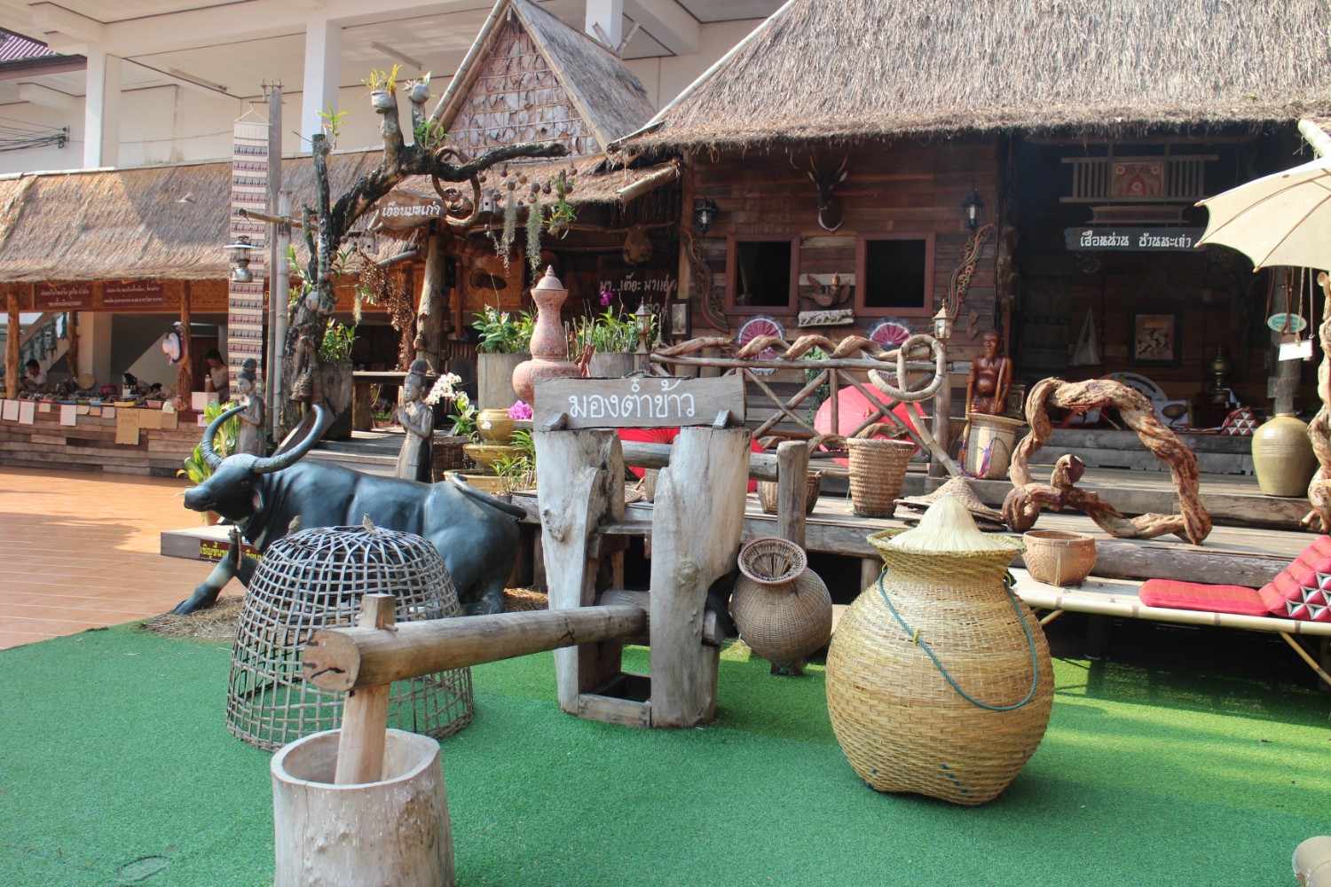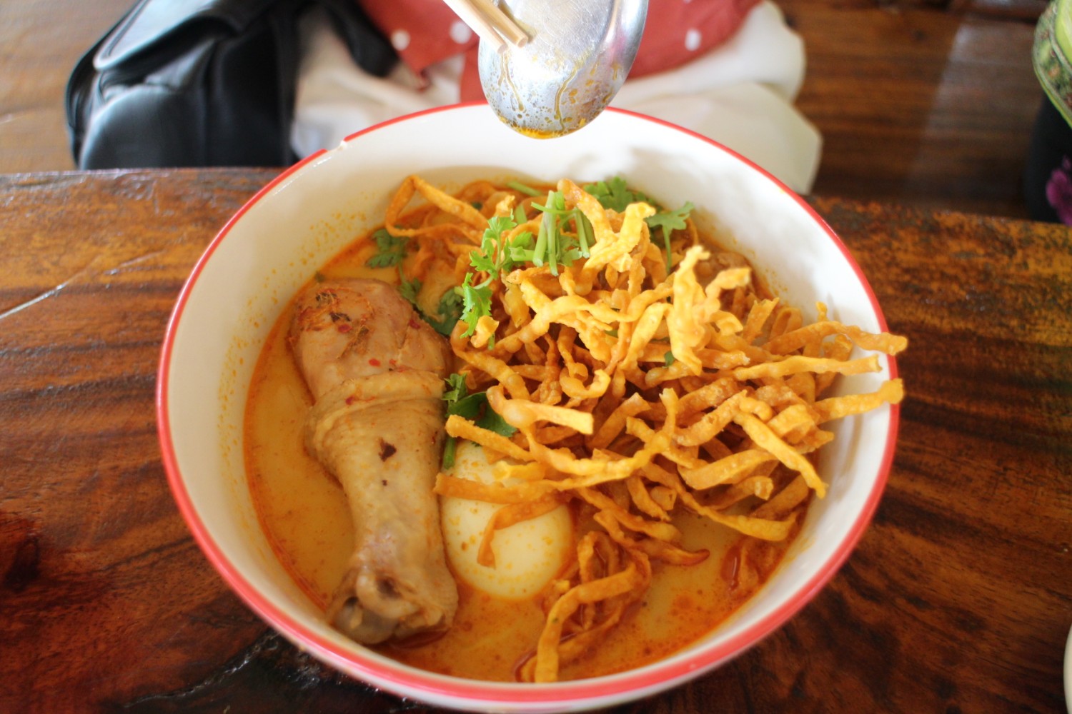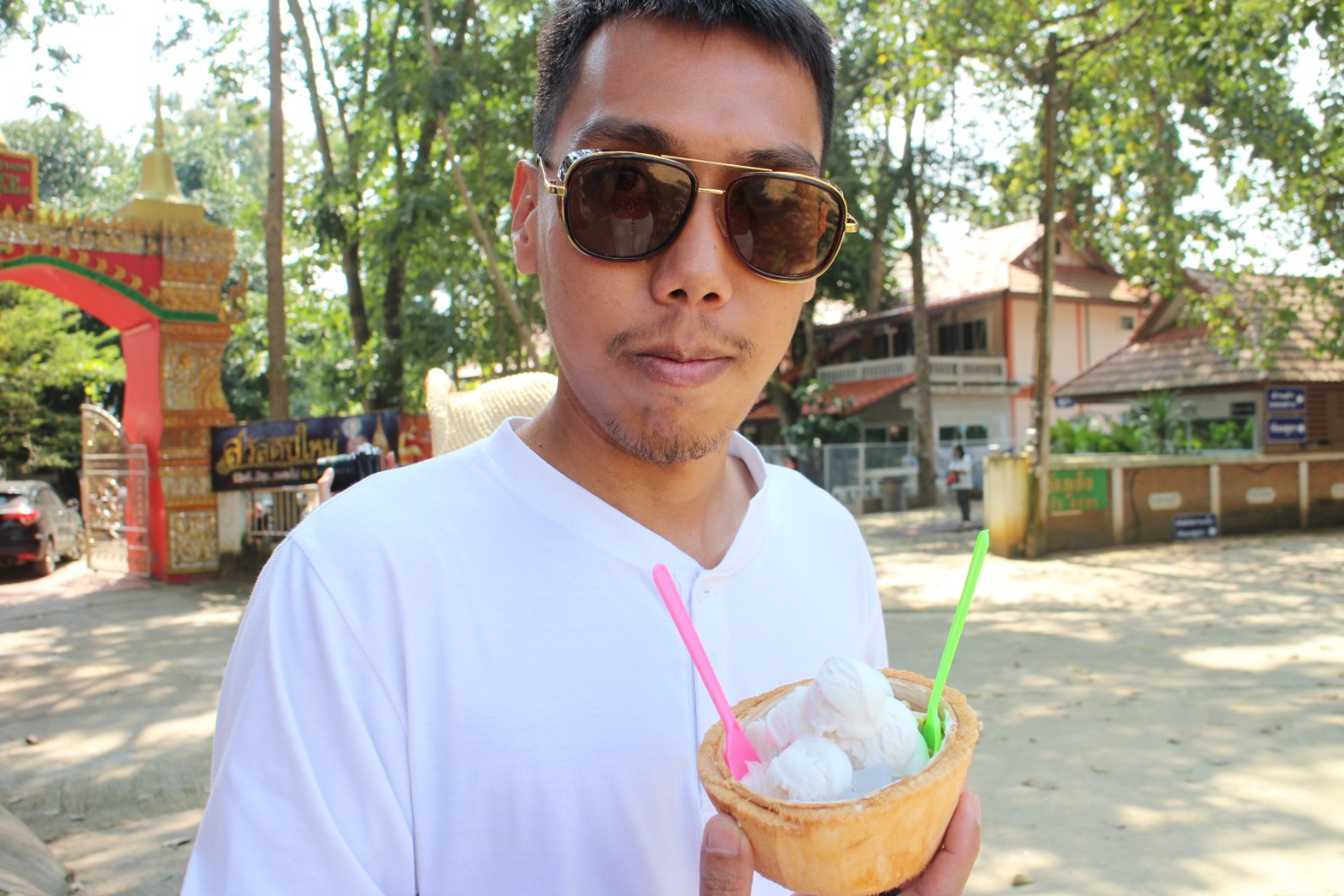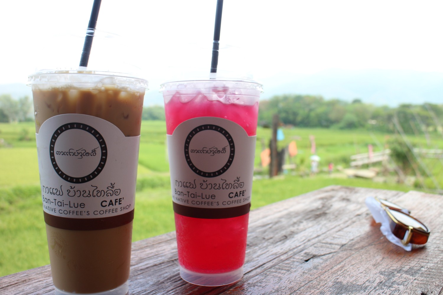 สำหรับมื้อเที่ยงวันนี้ เราแวะที่ กาแฟบ้านไทลื้อ และ ลำดวนผ้าทอ เรากินข้าวซอยไก่ ส่วนแฟนกินข้าวมันไก่ เรื่องรสชาติของข้าวซอย เราให้ 7/10 (รสชาติถือว่ากินได้ แต่เราเคยเจอที่อร่อยกว่านี้) แฟนสั่งกาแฟเอสเปรสโซ่เย็น ส่วนเราสั่งน้ำแดงมะนาวโซดา ที่นี่ไม่มีเมนูปั่น รสชาติเครื่องดื่ม เราให้ 6/10 เอสเปรสโซ่ของแฟนเข้มมาก แต่ก็ทำให้คนขับตาสว่างกันเลยทีเดียว ส่วนน้ำแดงโซดาก็เปรี้ยวปี๊ด แล้วเราก็เดินไป shopping เสื้อผ้า ผ้าถุงที่ลำดวนผ้าทอ พร้อมกับเดินถ่ายรูปบรรยากาศรอบๆค่ะ