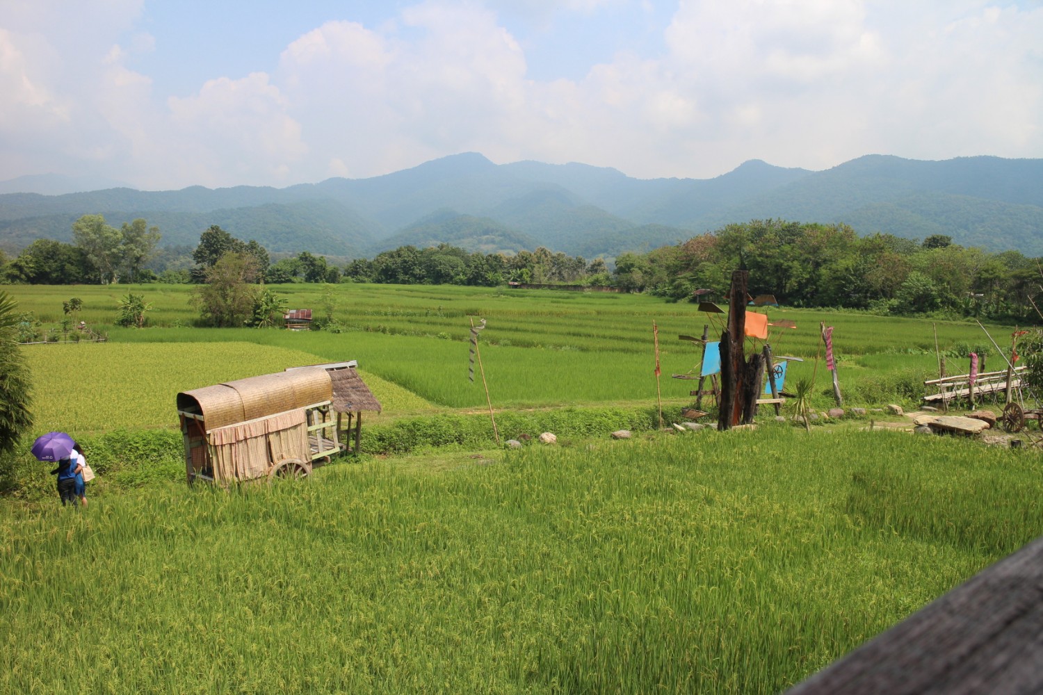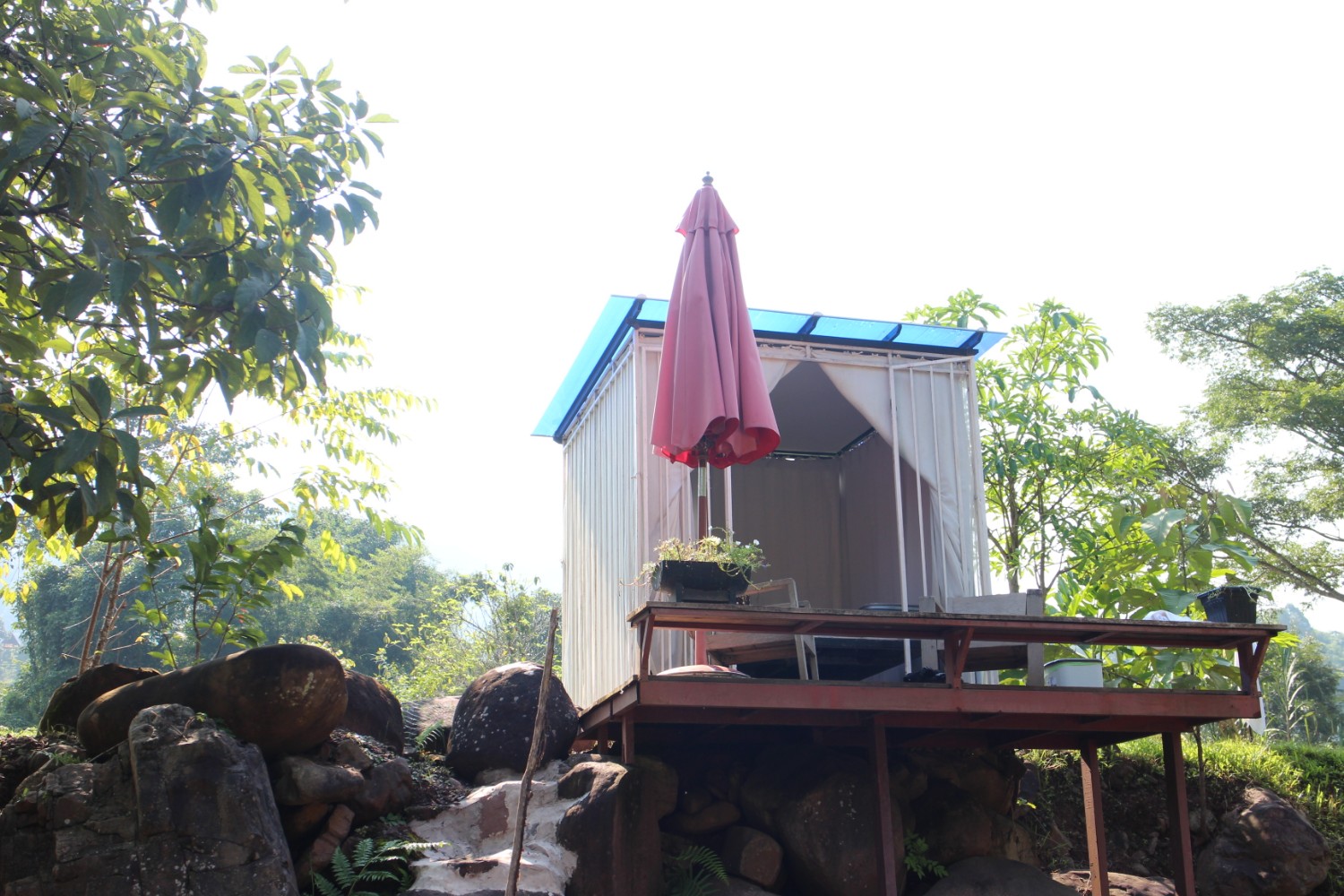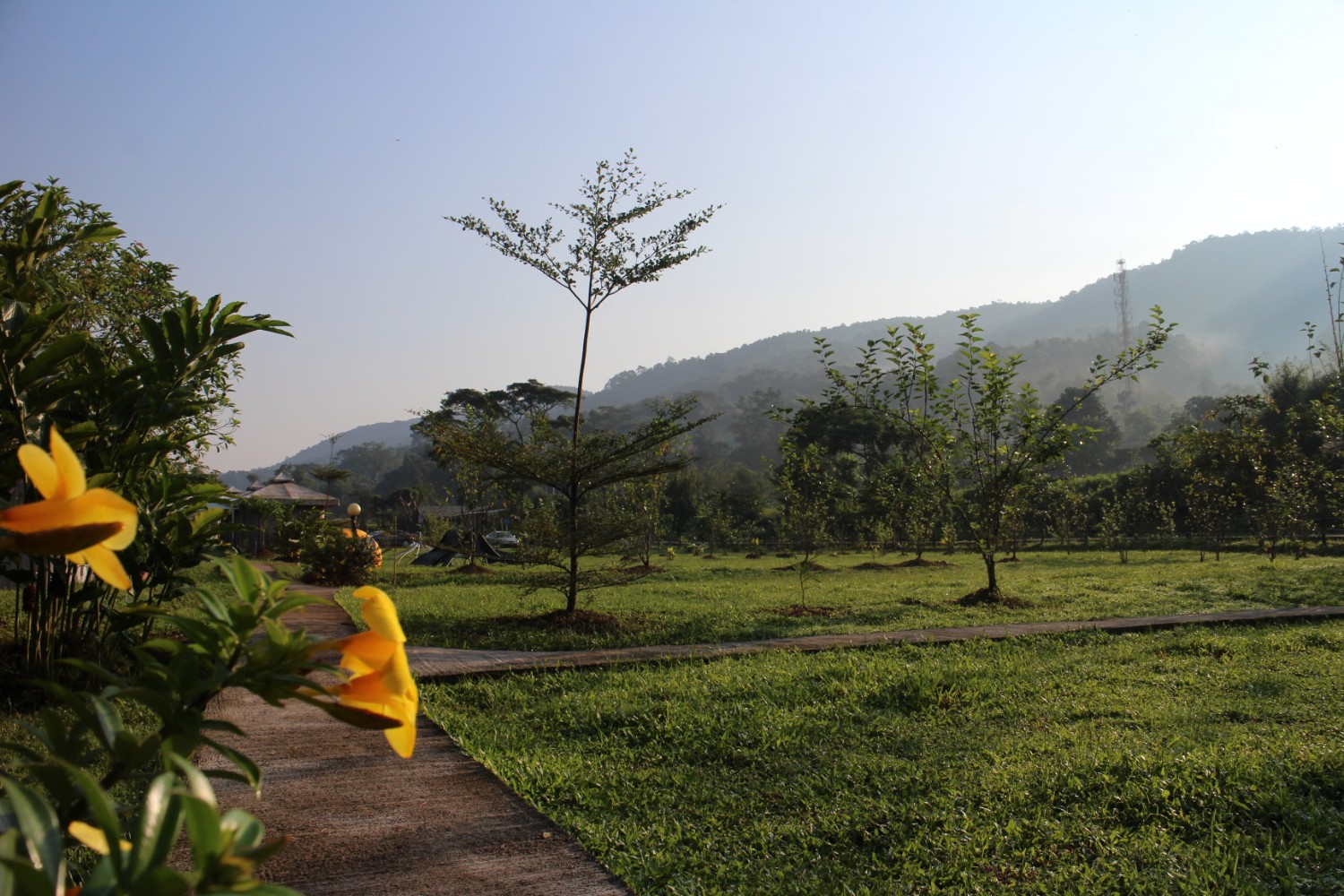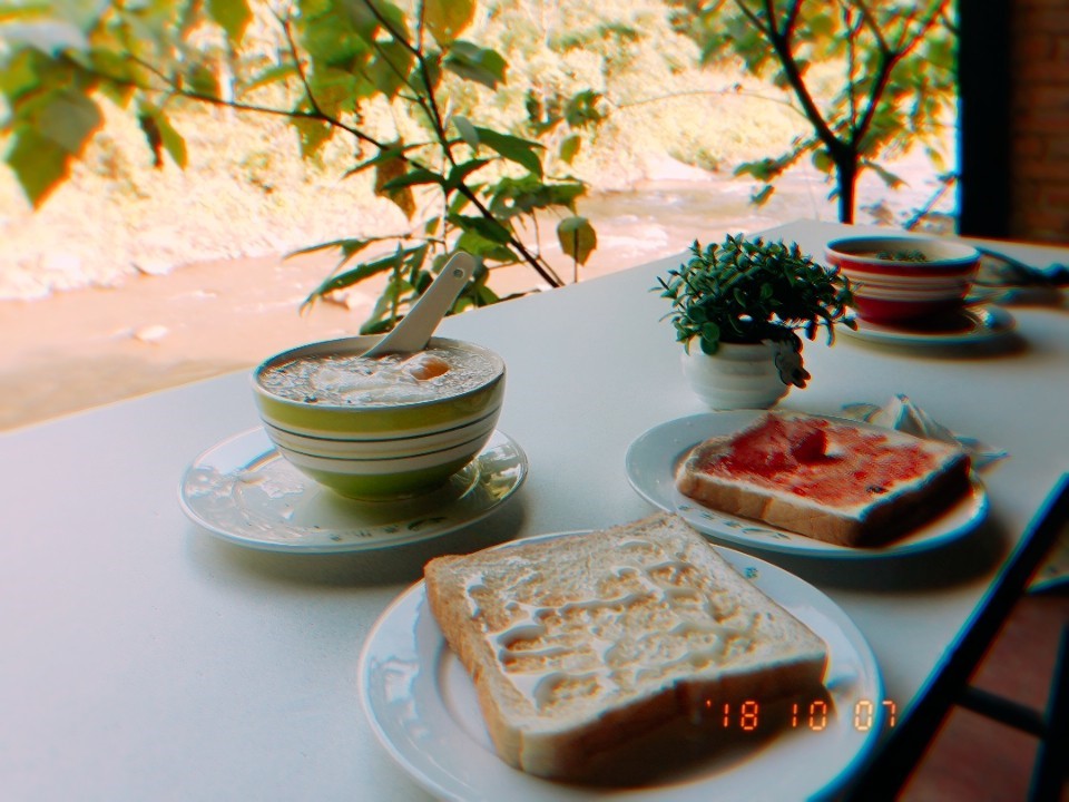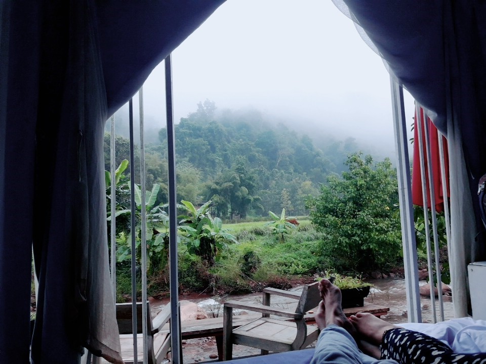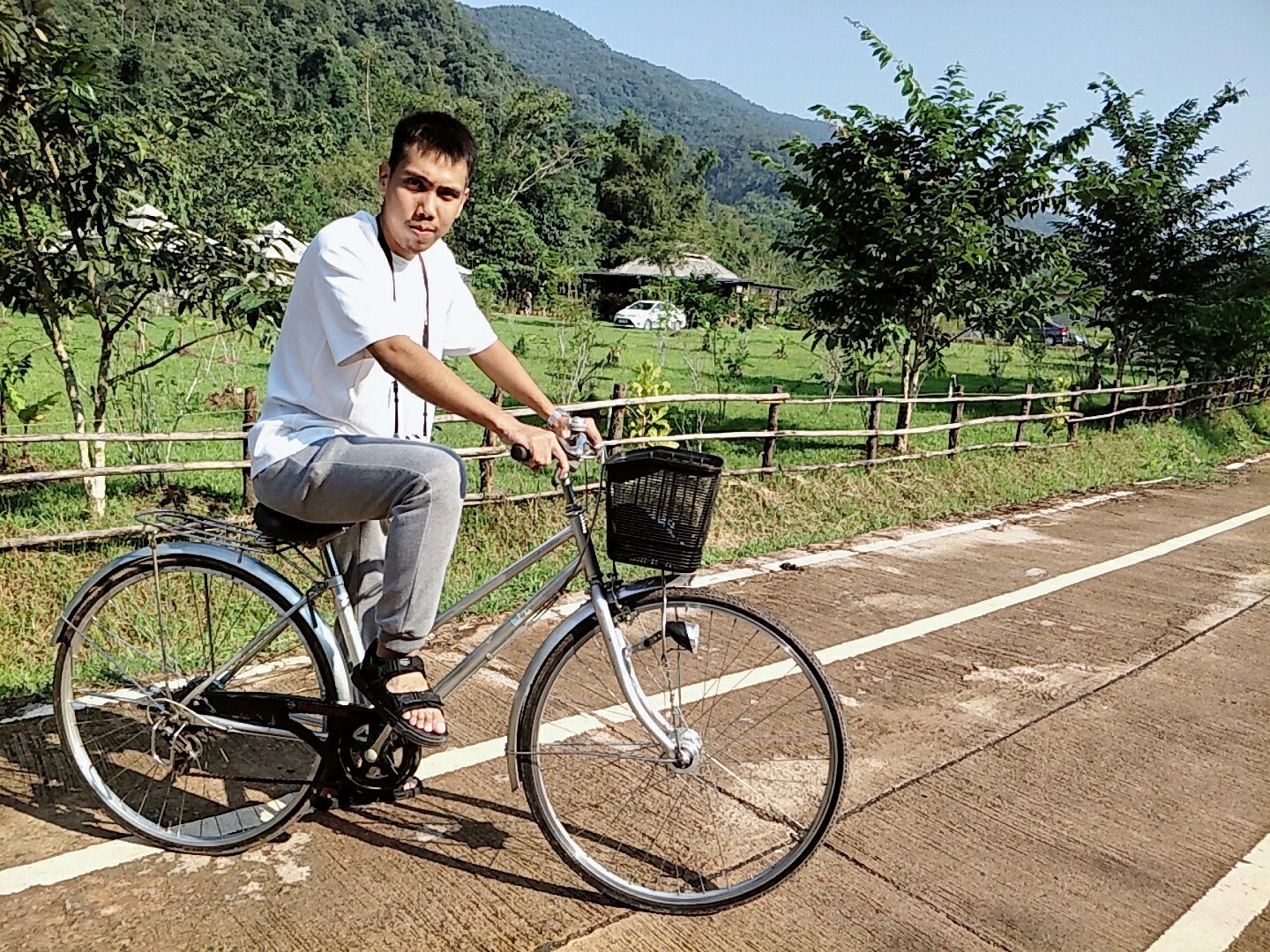 เราตื่นมาดูหมอกลงในตอนเช้า แค่เปิดกระโจม เราก็เห็นหมอกแล้ว ฟินมาก เรากินข้าวเช้าที่สวนริมมาง แล้วก็อาบน้ำแต่งตัว ไปปั่นจักรยาน (รีสอร์ทมีให้ยืม) ปั่นไปเที่ยวใกล้ๆรีสอร์ท สูดบรรยากาศบริสุทธิ์