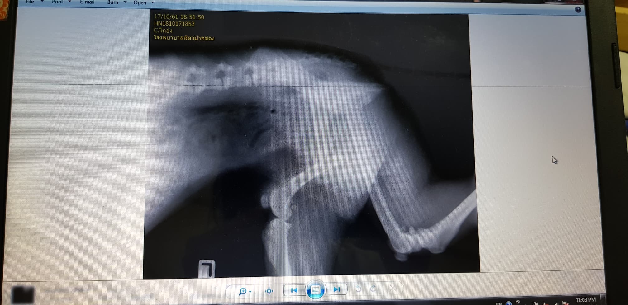 และที่น่าเศร้ามากคือ ในตอนแรกก่อนเอ็กซ์เรย์น้องหมาไม่ได้ทำท่าทีเจ็บปวด ก็เดินตาม เล่นนู้นนี่ตามปกติ เราก็คิดว่าคงไม่ร้ายเเรงแค่ช้ำในเฉยๆ ดีที่เรากลัวเลยลองพามาเอ็กซ์เรย์เพื่อความแน่ใจ ไม่งั้นไม่รู้ว่าจะขนาดนี้