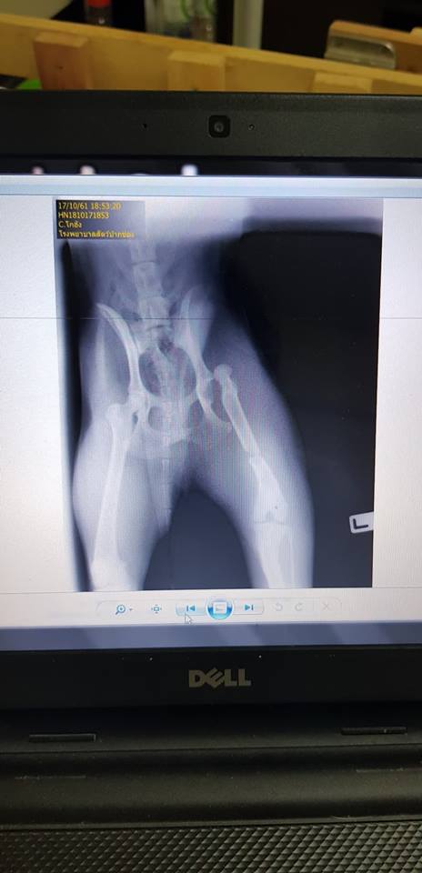 น้องเดินสามขา ท่าทางจะเจ็บมาก เลยรีบพาไปเอ็กซ์เรย์ ปรากฎว่ากระดูกขาหลังหัก กับ สะโพกหลุด ฮืออ