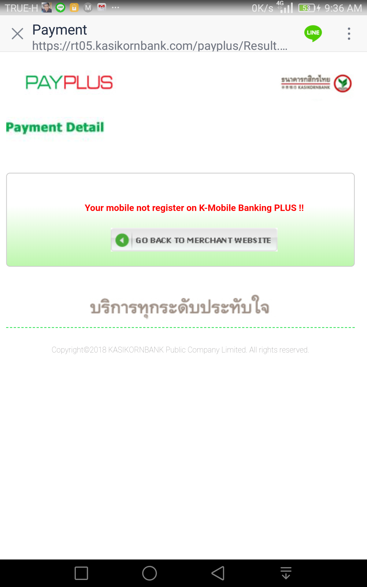 ออมทองของ line finance ชำระเงินด้วย k+ ไม่ได้