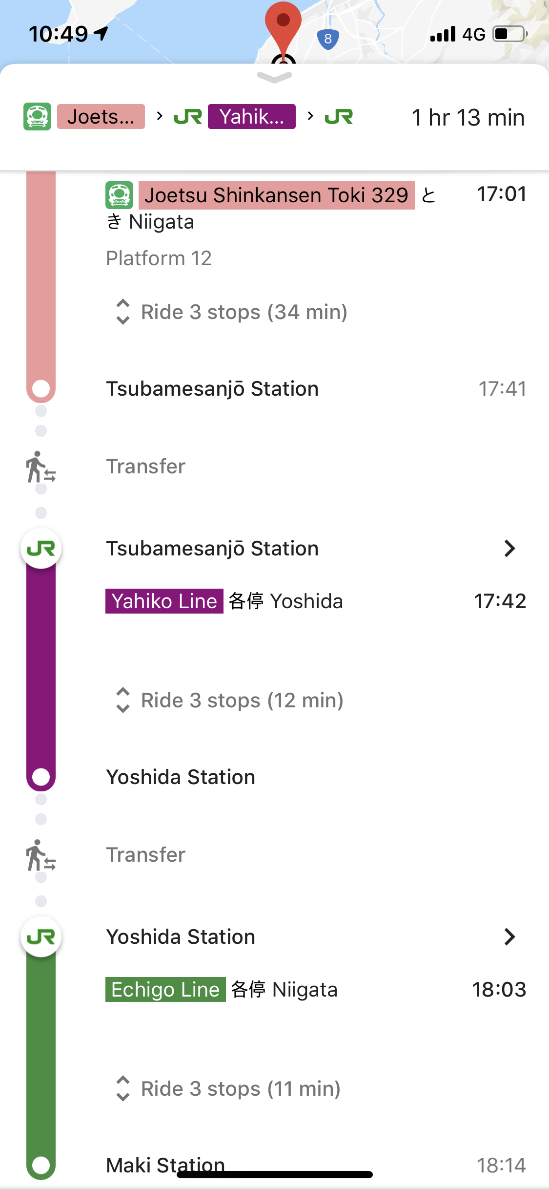 จะเป็นประมาณนี้ (ข้างบนที่หายไปคือขึ้นจากสถานี Echigoyuzawa ค่ะ) เราเลยไม่แน่ใจว่า ถ้าใช้ jr east เนี่ย รวมรถไฟสายที่เรากดจากใน google ด้วยรึเปล่าคะ