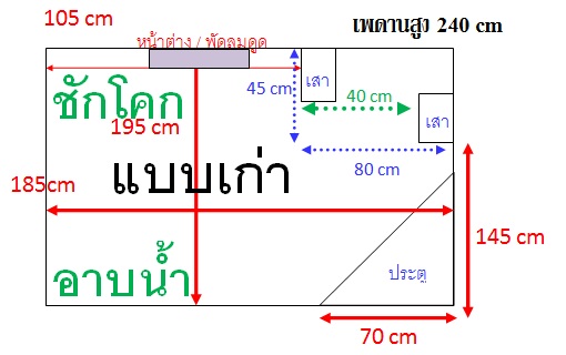 ตามภาพที่แนบมานี้ เป็นผังร้องน้ำเก่าที่ใช้อยู่ มีการซ่อมเพดานเนื่องจากน้ำรั่วเสร็จแล้วจึงอยากปรับปรุงห้องน้ำให้ดีขึ้นคะ