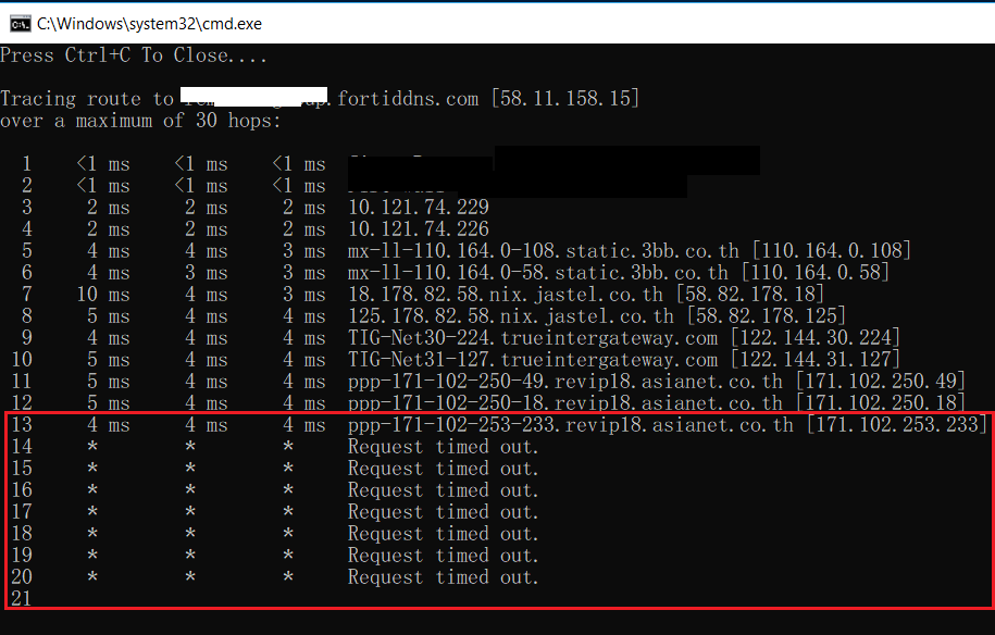 การ Tracert มาจากภายนอกมาตายที่ Server TRUE