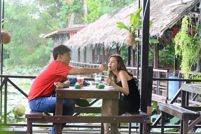 โดยทั้ง โหน-แจมมี่ นัดแนะขับรถมาเจอกันช่วงบ่ายๆ พอมาถึงร้านทั้งคู่ไม่รอช้ารีบสั่งของว่าง ขนมเค้กอร่อยๆ และเครื่องดื่มมาทานแก้กระหาย พร้อมชวนกันเช็กกระแสละครทางโซเชียลและป้อนขนมโชว์ช็อตหวานกันสักหน่อย จากนั้นจูงมือกะหนุงกะหนิงพากันเดินชมบรรยากาศสไตล์คาเฟ่ในสวนแบบสบายๆ สูดอากาศบริสุทธิ์ให้เต็มปอด เพราะเป็นร้านกาแฟในบรรยากาศสไตล์เรือนไทย