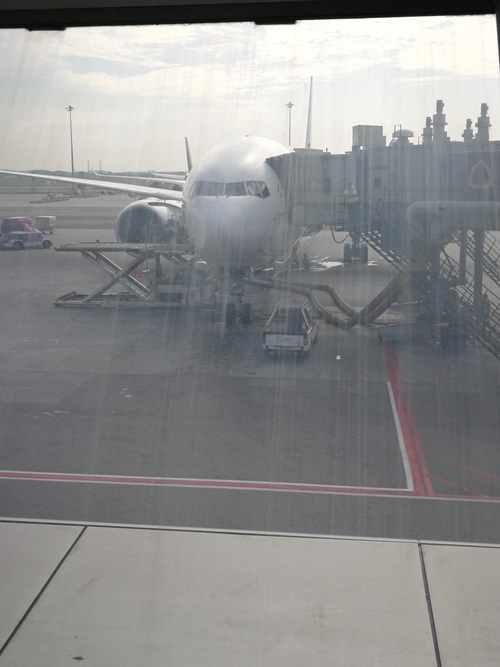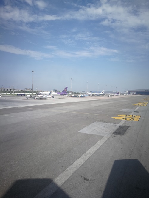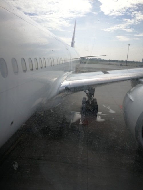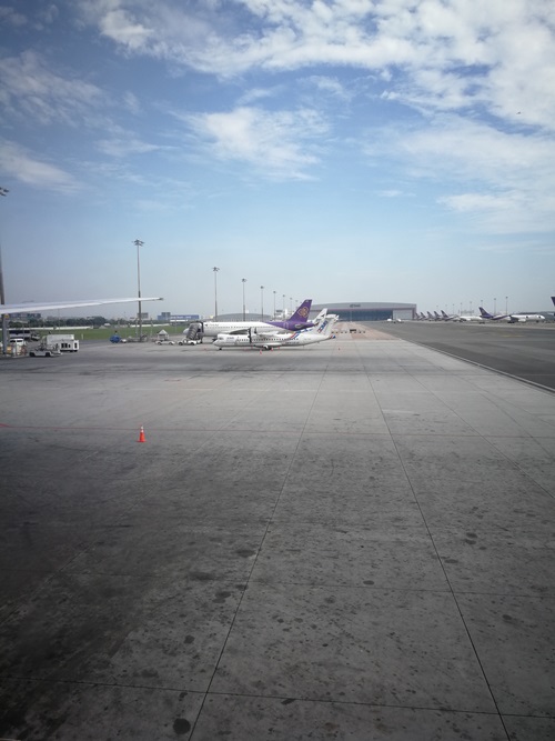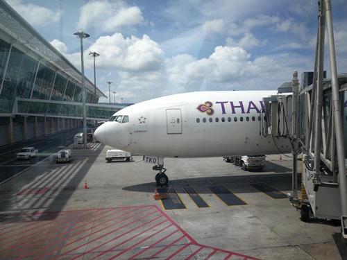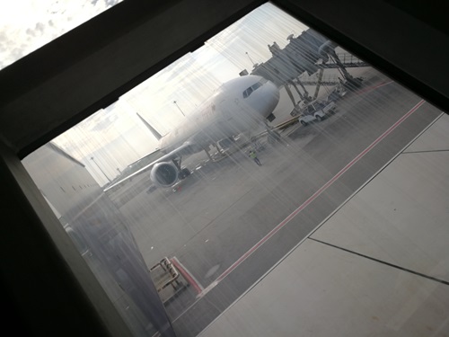 แล้วเดินต่อไปยังประตูทางออก นั่งรอประมาณ 10 นาที พนักงานก็เรียกขึ้นเครื่อง ผมรอจนเกือบคนสุดท้าย