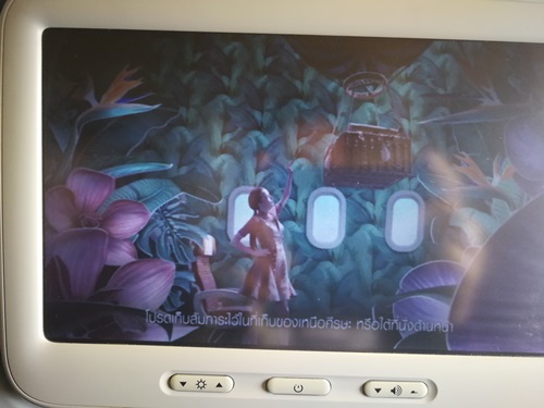 นั่งไม่ทันก้นอุ่นเลย ได้ยินคำว่า "โหลดผู้โดยสารสมบูรณ์" แล้วก็เริ่มเปิดสาธิตความปลอดภัยผ่านมอนิเตอร์หน้าที่นั่ง