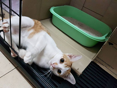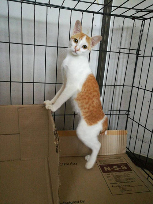 พอดีที่บ้านเลี้ยงแมวแบบระบบปิดไว้เป็นสิบตัวแล้ว และแมวจรหน้าบ้านอีกหลายตัว เลยไม่สามารถเลี้ยงเพิ่มได้ ..แต่แถวบ้านมีแมวเยอะมาก ถ้ามีลูกแมวหลงมา ผมก็จะเก็บมาดูแล แล้วประกาศแจกไป ...ตอนนี้เก็บลูกแมวสีขาวส้มตัวนี้ มาเลี้ยงไว้ได้ 2 เดือนแล้วครับ ให้กินอาหารอย่างดี ทั้งอาหารเปียก อาหารเม็ด ฉี่ถ่ายในกระบะทราย ... จะเลี้ยงไว้เองก็ไม่ไหวแล้ว แมวในบ้านเยอะเกินไป เลยคิดว่าดีที่สุด คือส่งน้องเขาให้กับคนที่อยากจะเลี้ยงและต้องเลี้ยงน้องได้อย่างดีจนหมดอายุไขของน้อง