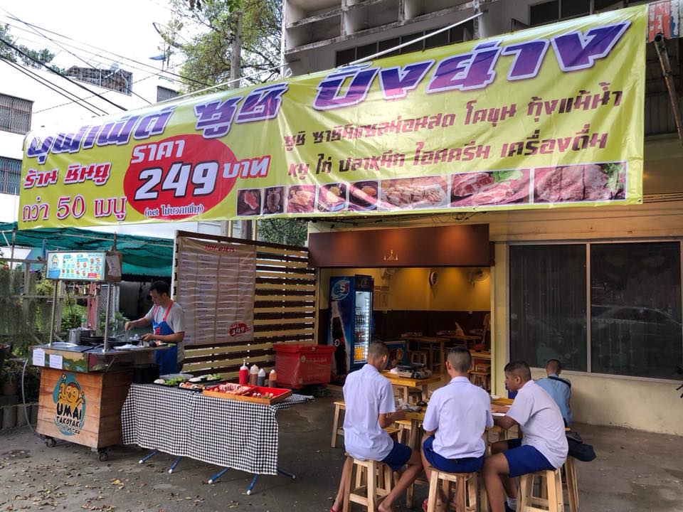 (ดึงมาจากเพจของร้าน ปัจจุบันทางร้านไม่มีตั้งโต๊ะขาย UMAI แล้วนะคะ เป็นเก้าอี้ไม้สำหรับลูกค้านั่งทานล้วนๆ เลย)