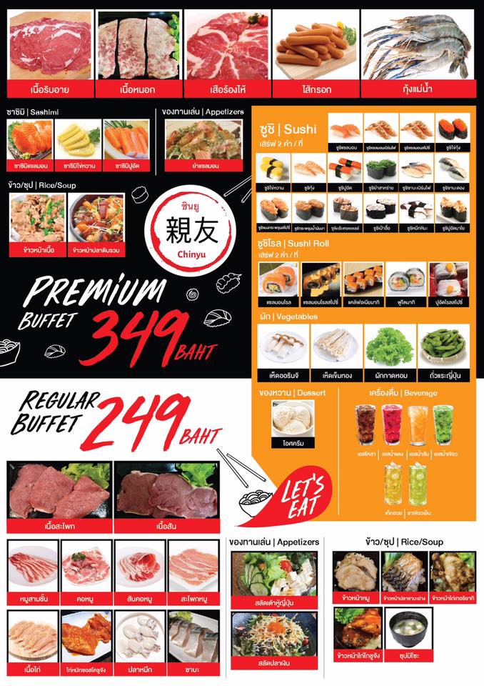 ชื่อร้าน ชินยู บุฟเฟต์ ซูชิและปิ้งย่าง ก็ตามชื่อเลยค่ะ มีทั้งปิ้งย่างและซูชิให้เลือกสรร