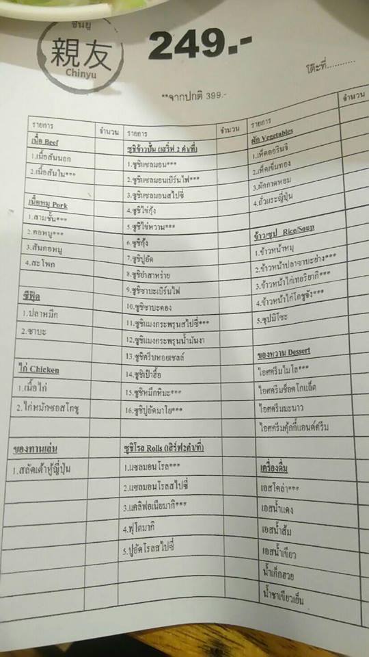 วิธีการสั่งอาหาร เมื่อเราแจ้งว่าเราจะทานในราคาเท่าไหร่ เขาจะนำกระดาษของราคานั้นๆ มาให้เราเขียนจำนวนอาหารที่ต้องการและสั่งค่ะ... ไม่ได้เอามาแค่ใบเดียวนะ เอามาวางให้เป็นปึกเลยย
