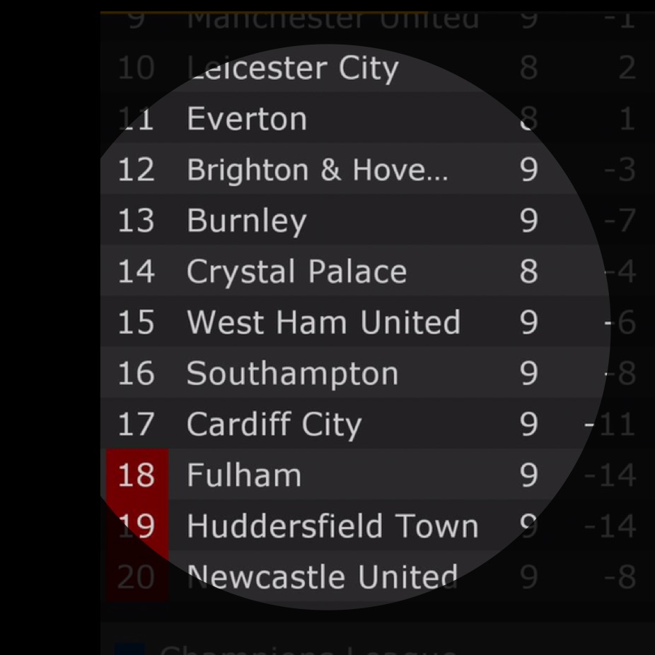 : : สรุปตารางทีมลุ้นหนีตกชั้น EPLประจำนัดที่ 10/2018-2019 : :