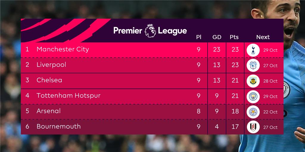 +++++ ตารางคะแนน Big 6 ล่าสุดในพรีเมียร์ลีค +++++