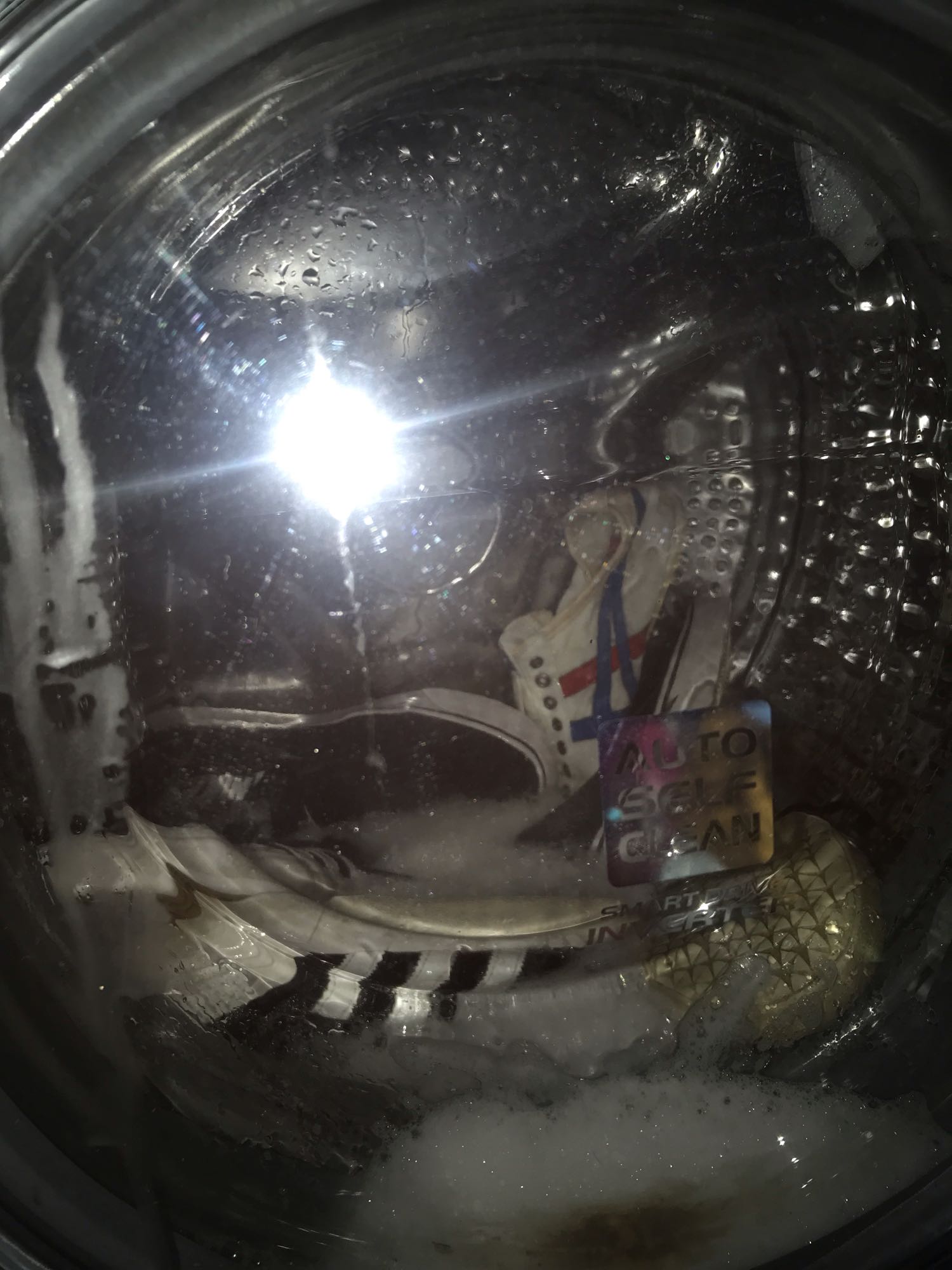 ซักรองเท้าในเครื่องซักผ้าฝาหน้า