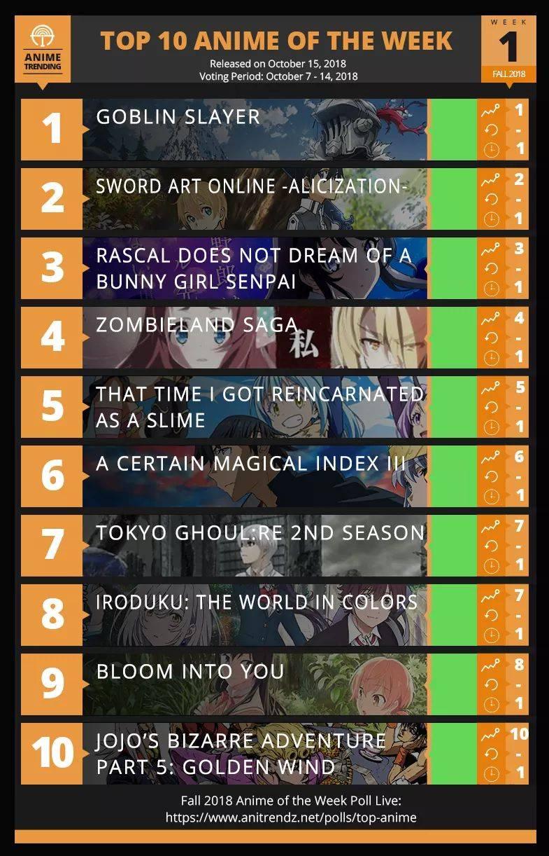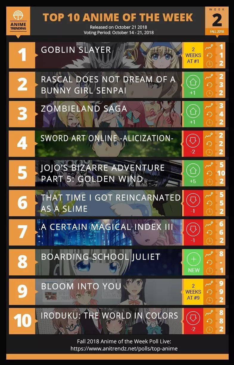 top 10 anime of the week for fall 2018 week 2! มาดูอันดับวีค2กันต่อค่ะ