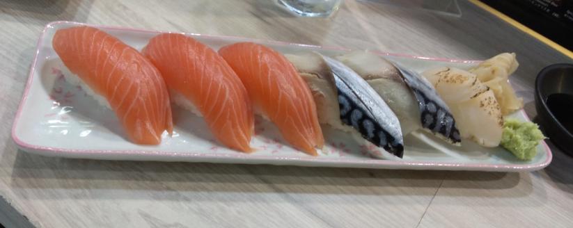 ปลาแซลมอล 45 บาท ซาบะ 35 บาท ถือว่าชิ้นใหญ่เลย เทียบร้านดัง