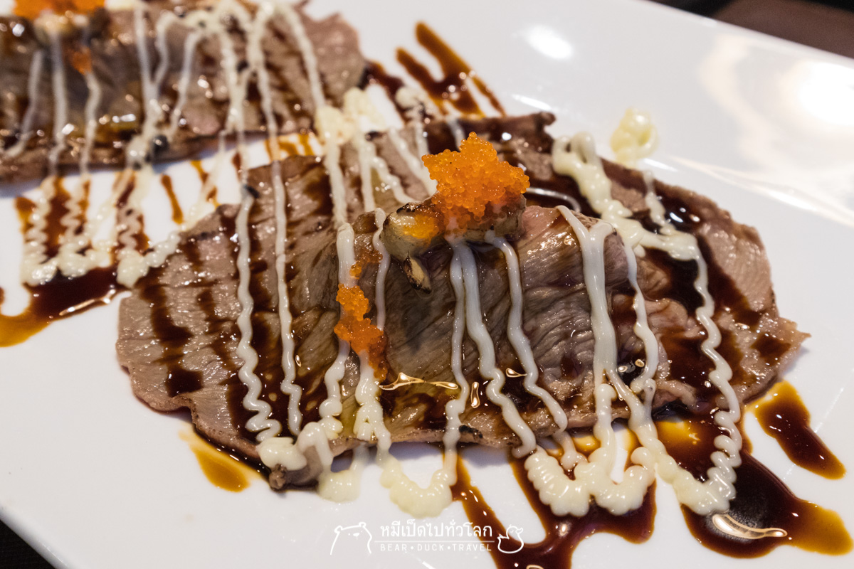 - เนื้อวากิวเทปันยากิ หั่นเป็นเต๋าสี่เหลี่ยมผัดกับซอสญี่ปุ่นใส่ถั่งงอก กำหล่ำปลี เหนียวยิ่งกว่า... T^T
