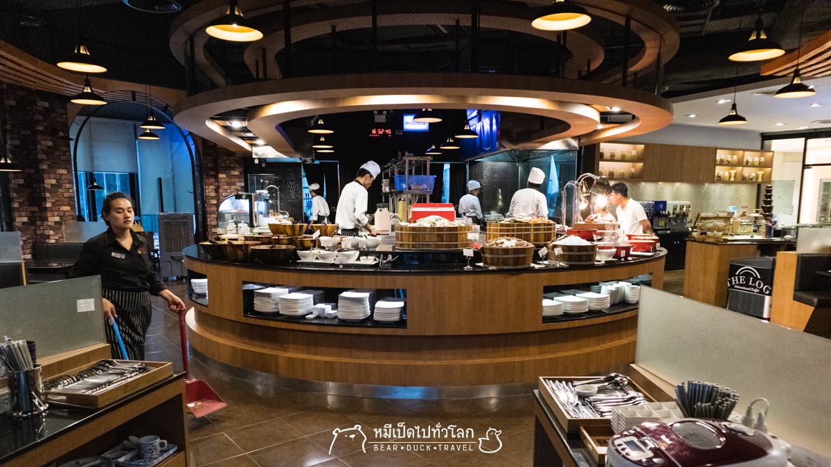 หมีเป็ดยกบ้านชิมบุฟเฟ่ต์ The Log เนื่องจากเห็นว่ามีโปร มา4จ่าย3