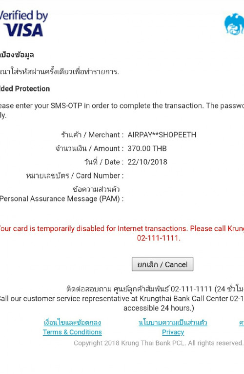 บัตรเครดิตกรุงไทยชำระสินค้าออนไลน์ไม่ได้