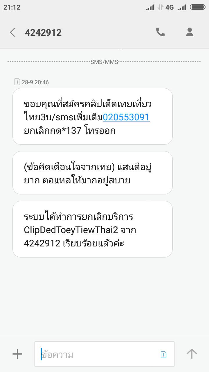 ไม่ได้ใช้ซิมทรู แต่มีsmsแจ้งค่าบริการเข้าทุกเดือน