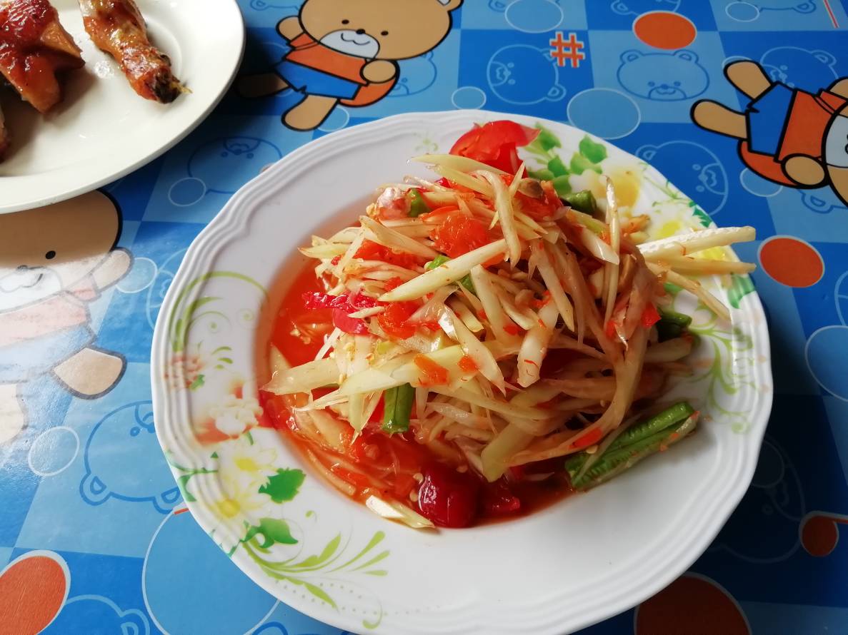 ถ้าเป็นร้านส้มตำ จะกินที่ร้านไม่มีชื่อ อยู่หน้าปากซอยบ้านเลย(วิภาวดีรังสิต 20) อยู่ติดกับศูนย์รถ Triumph Vibhawadi (กำลังตกแต่ง)