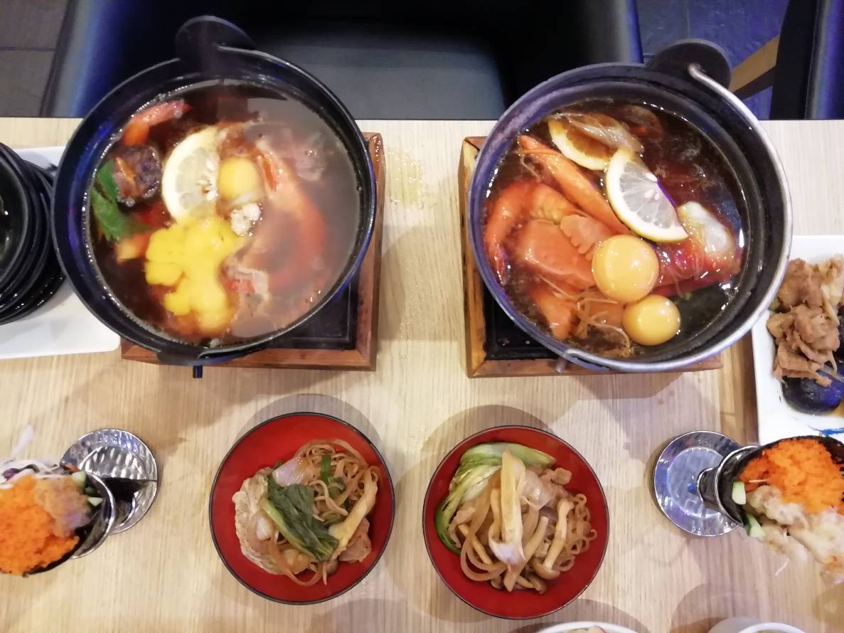 สั่งหม้อไฟไป 2 หม้อ หมูกะเนื้อ เอาปลาดิบมาด้วย แต่ไม่กินดิบนะ ใส่หม้อไฟไปเลย