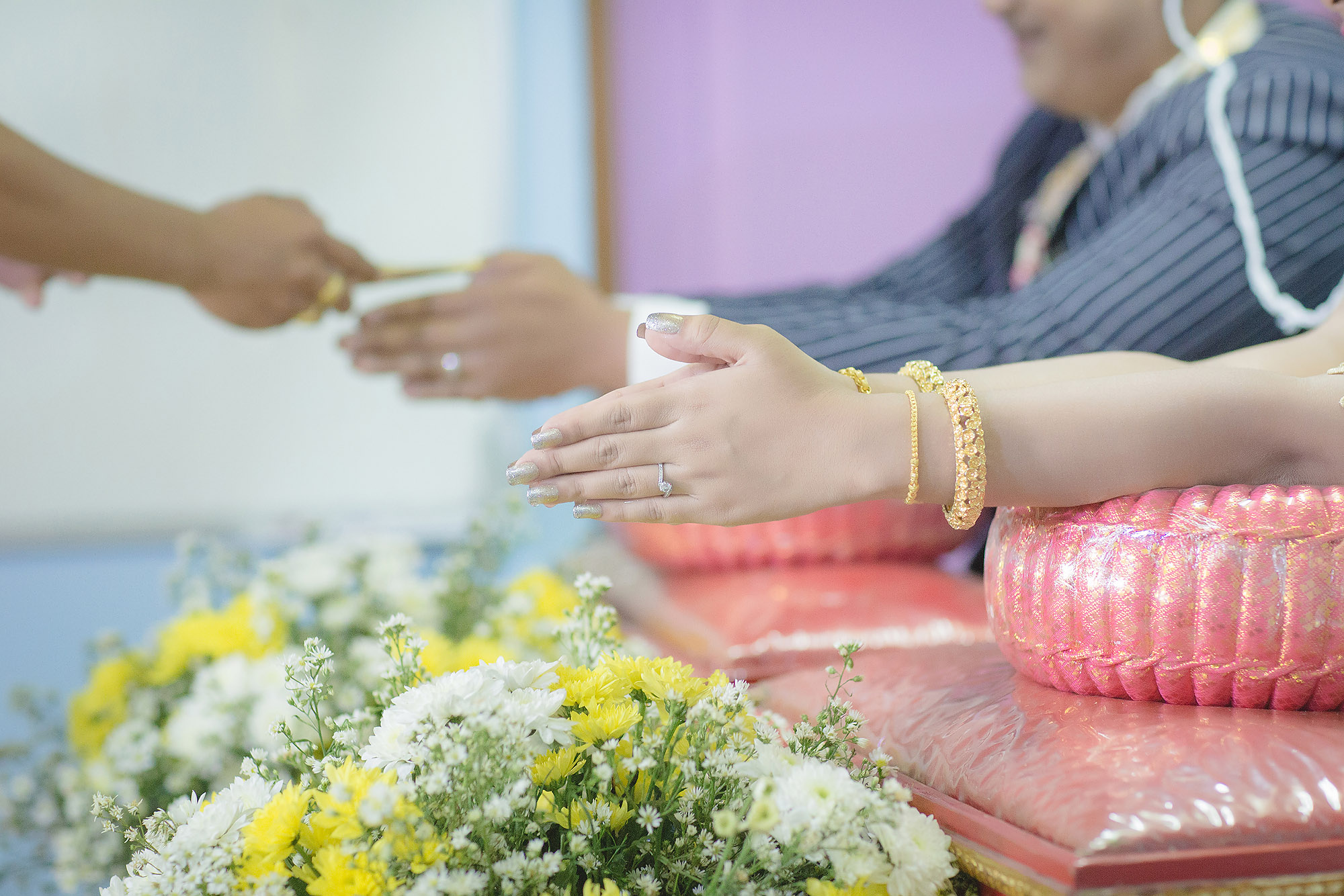 ตามหาญาติผู้ใหญ่เลยค่ะ ขอข้อมูล ของที่ต้องใช้ เนื่องจากเราไม่ได้ใช้ออแกไนซ์ และทางบ้านเรา ต้องมีกระจาดฤกษ์ด้วย ตรงนี้เราสบายใจที่จะทำเพื่อญาติๆและพ่อแม่สบายใจ เค้าให้ทำอะไร เราก็ทำค่ะ แต่บางอย่างทางผู้ใหญ่ก็ลดหลั่นให้เองด้วยนะคะ โชคดีจริงๆ พอถึงวันงาน เราจะมีโค้ชส่วนตัวเองค่ะ จะมีคนบอกให้ทำแบบนี้ ตรงนี้ เราก็ตามๆเค้าไปค่ะ