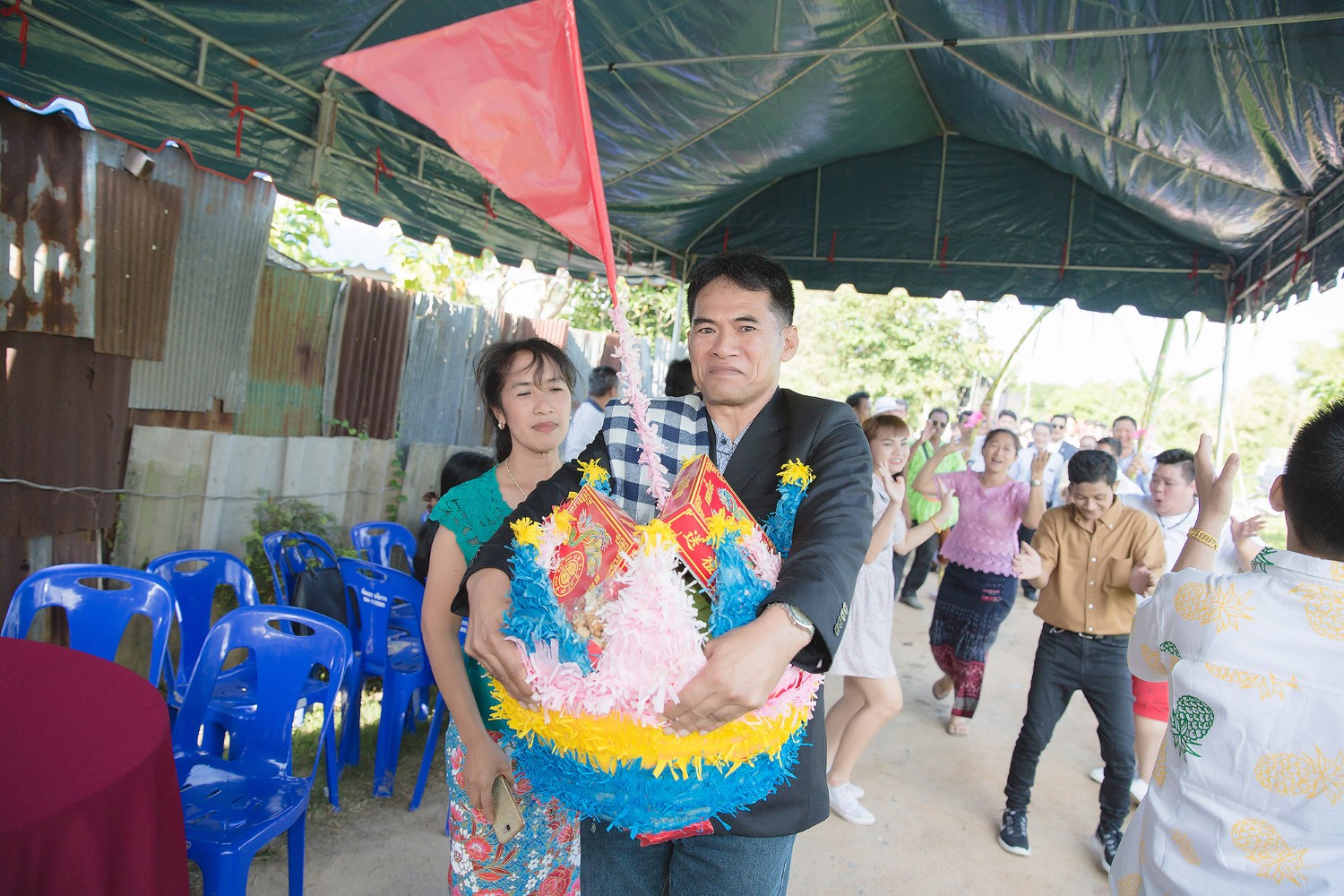 สงสารน้า ที่เป็นคนอุ้มกระจาดฤกษ์มากค่ะ คือภายในกระจาดมีแต่ของหนักๆทั้งนั้น ส้มโอ กล้วยหอมหวีนึง มะพร้าวลูกนึง และขนมอีกหลายอย่าง ซึ่งคนอุ้มกระจาดฤกษ์ เมื่อยกแล้วห้ามวางด้วยค่ะ (ประเพณีทางบ้านเรานะคะ ^^)