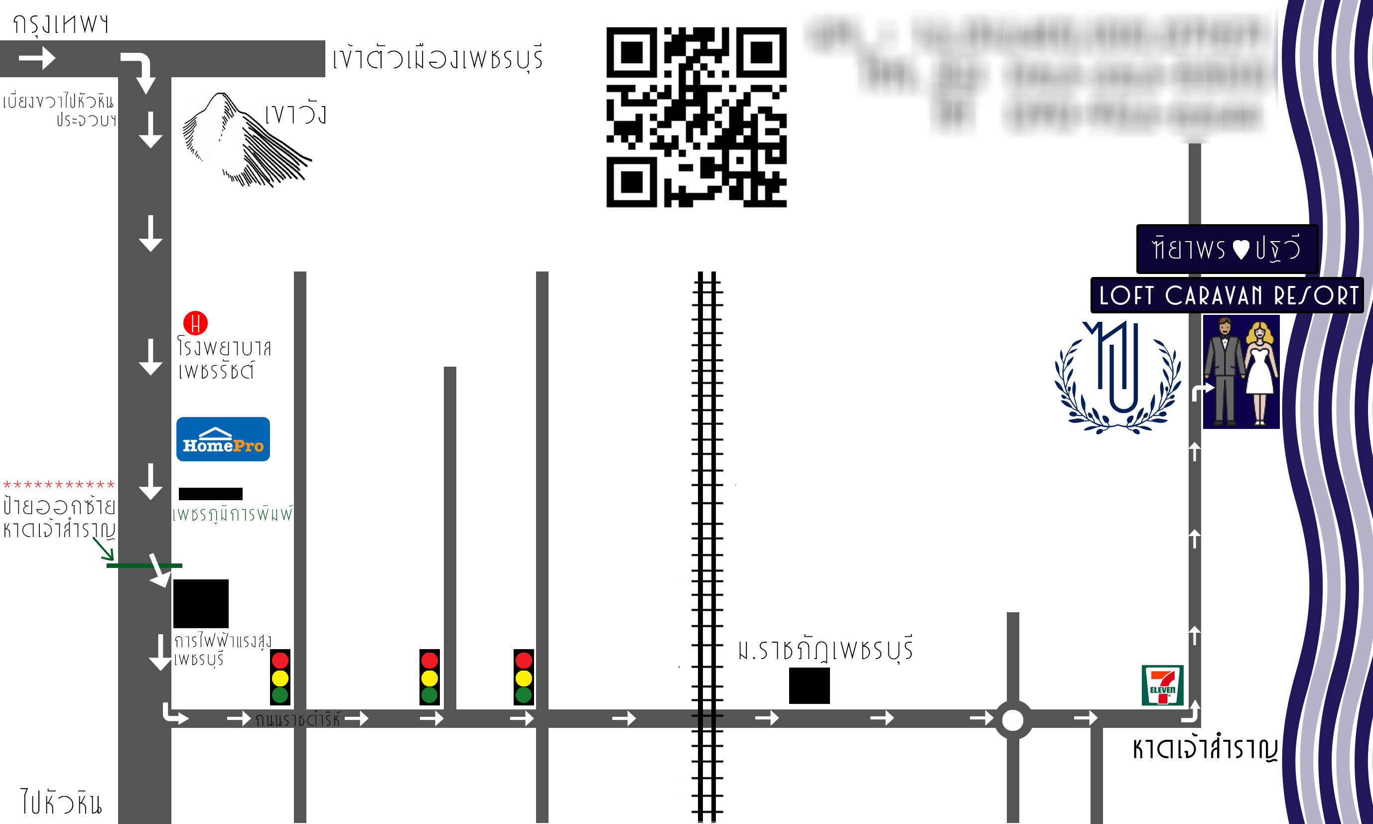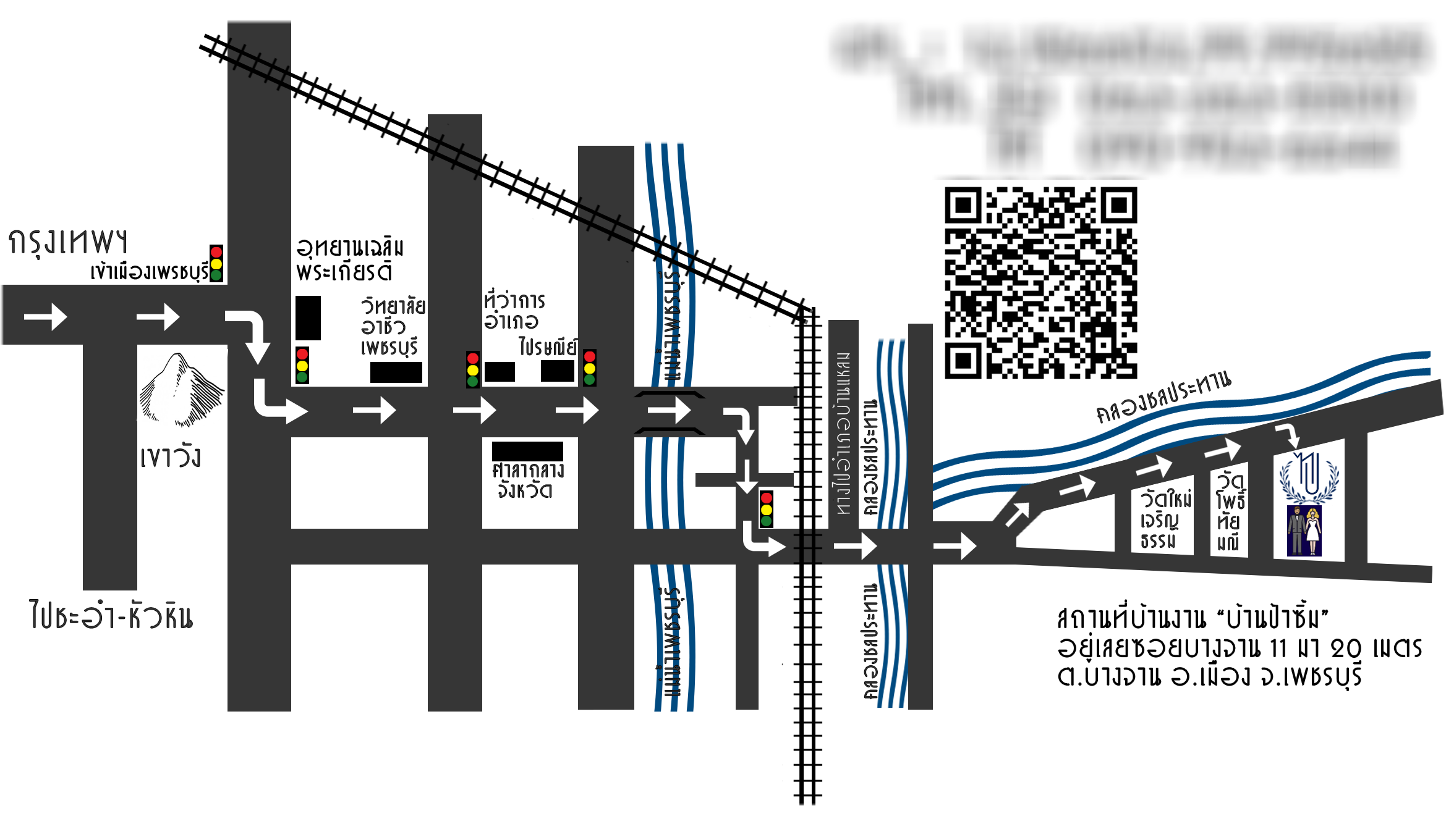 และเราก็จัดทำแผนที่แนบลงไปในซองการ์ด พร้อมQR Code ที่ทำจากInternet ไปด้วย เพื่อการเดินทางที่สะดวกของผู้มาร่วมงาน