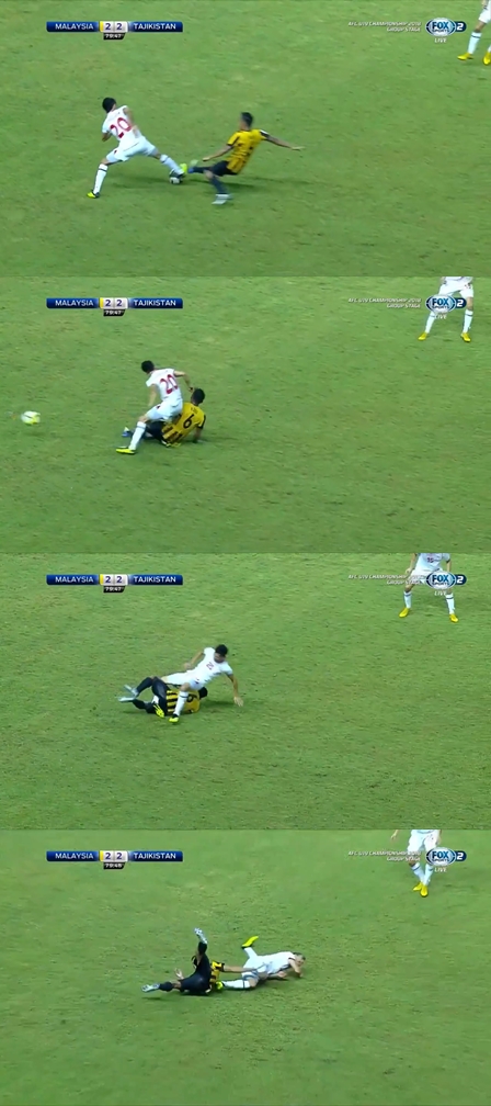 AFC U19 มาเลเซีย - ทาจิกิสถาน นักเตะมาเลเซียเสียบนักเตะทาจิขาหัก