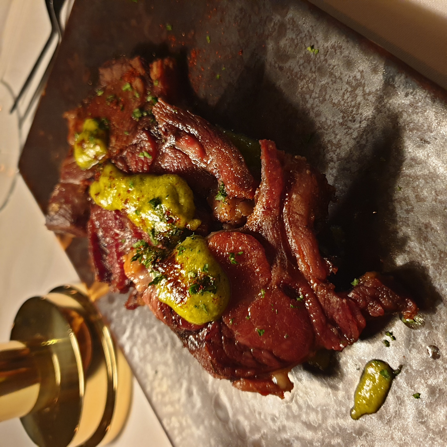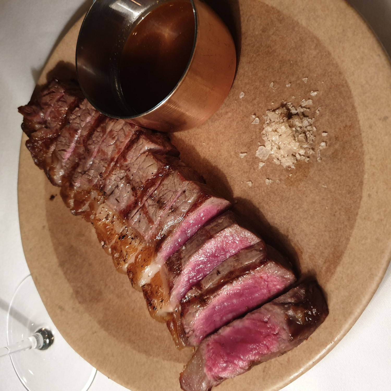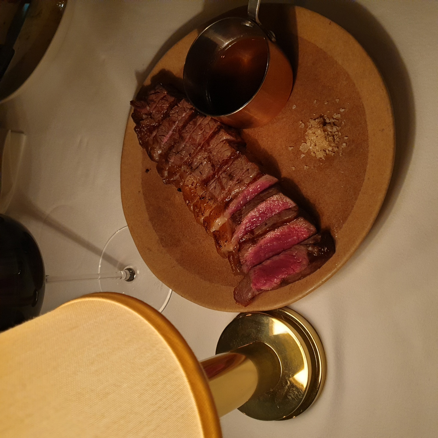 วันนี้ไม่ได้ทานเยอะ เพราะนี่คือมื้อที่สามของวัน แต่ความจริงแล้วจำวนที่สั่งก็คิดว่าน่าจะอิ่มพอดี ตัวที่เค้าแนะนำให้ทานกันก็คือ 45+ days dry aged striplion ที่ราคาแค่ 500bath/100g. ชิ้นที่เราได้มา 280g. = 1400 บาท ถือว่าไม่แพงเลยจริง