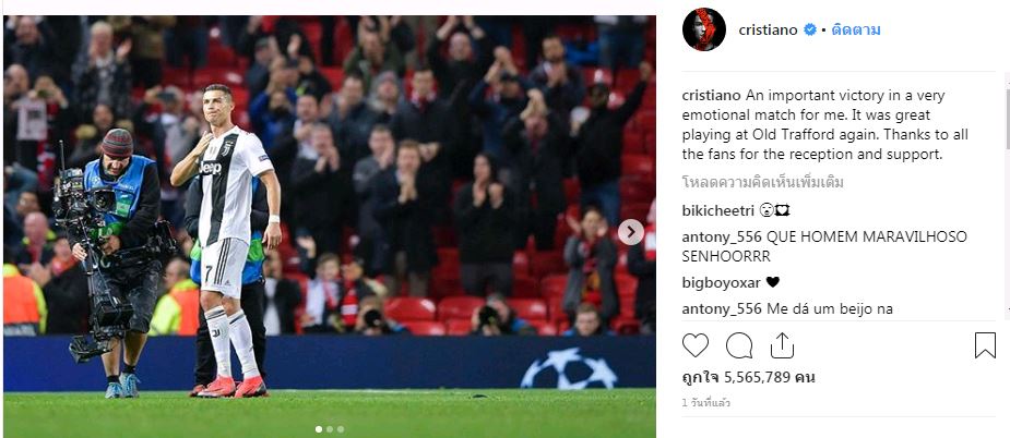โรนัลโด้ ขอบคุณแฟนแมนยู ที่ต้อนรับเขาเป็นอย่างดี