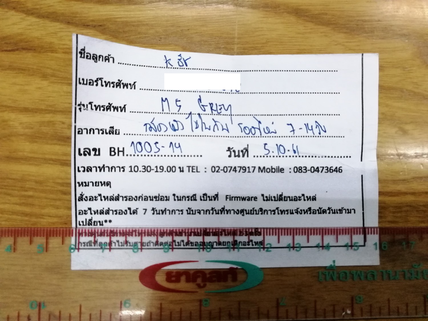วันที่ 5 ตุลาคมเลยไปอีกทีคราวนี้ช่างผู้ชายมารับเครื่อง (ทีมเจ้าหน้าที่หญิงน่าจะพักทานอาหาร) ก็ตรวจแล้วบอกว่าระบบกล้องมีปัญหา เลยทำเรื่องสั่งอะไหล่เลย บอกว่า 14 วันทำการจะติดต่อไป
