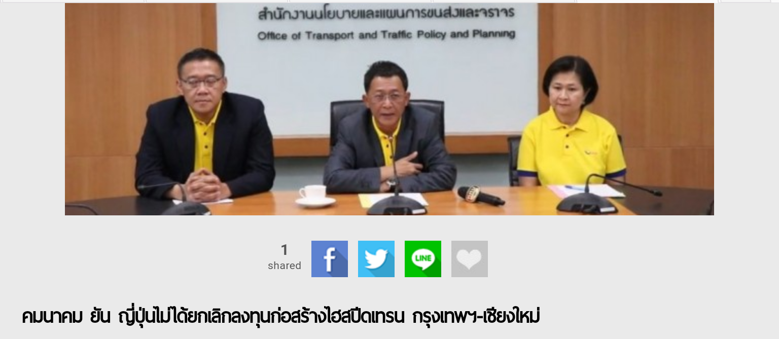 สำนักงานนโยบายและแผนการขนส่งและจราจร (สนข.) ยันญี่ปุ่นยังไม่ยกเลิกการร่วมลงทุนรถไฟฟ้าความเร็วสูงกรุงเทพ-เชียงใหม่