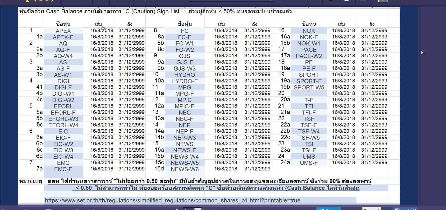 หรือ "มูลค่าหุ้น (book value) <50% ของราคาพาร์" สิ้นสุด 30/6/2561 หุ้นโดน Cash ถึง 31/12/2999 ติดคุก Cash 900 ปีกว่าๆ