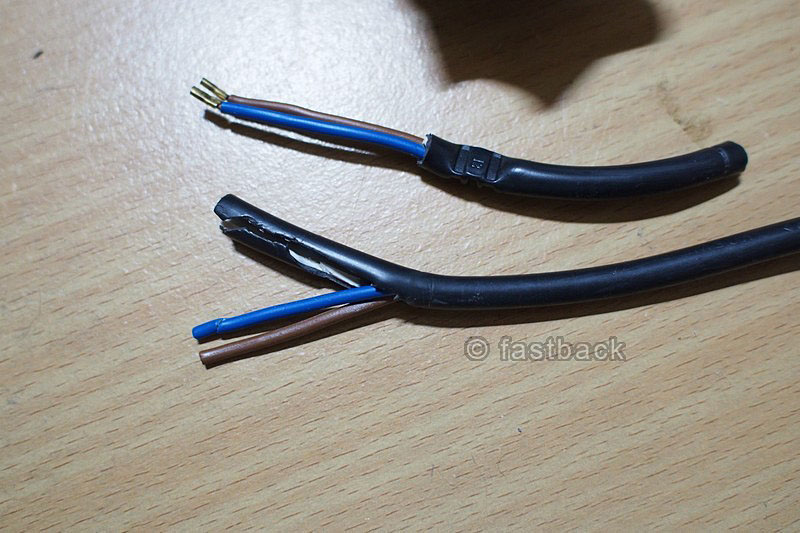 ใส่ปลอกยางกันสายไฟงอเข้าไปตามเดิม ขยับให้สายไฟด้านในงอนิด ๆ ตามรูปนะครับ