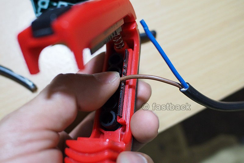 ปอกสายไฟ วางสายทาบตรงร่อง