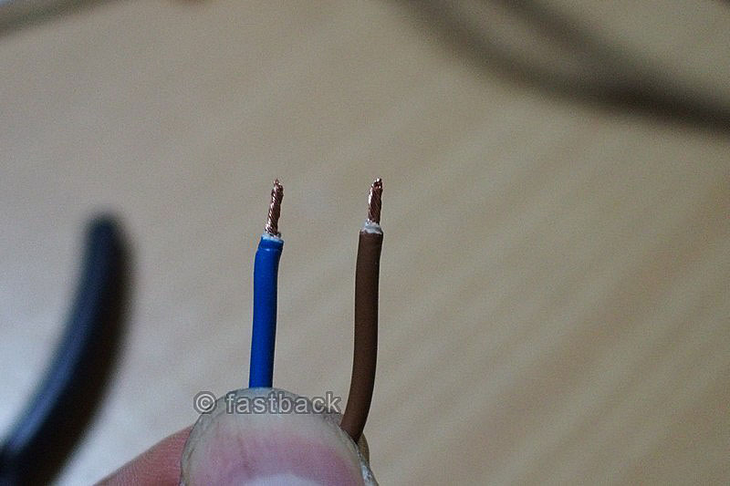 ปอกได้แล้ว แต่เราไม่มี ปลอกย้ำปลายสาย ผมหมุนเส้นทองแดงให้เป็นเกลียวแทนครับ