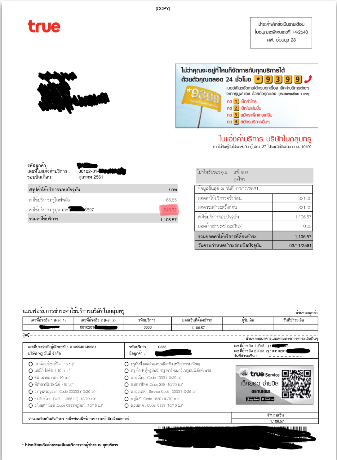 ผมเป็นลูกค้ารายเดือนของ truemove มาประมาณ 10ปี (หมายเลขโทรศัพท์ 08X-080-4904) เมื่อปรมาณวันที่ 7 เมษายนที่ผ่านมา ผมได้เข้าไปเปิดเบอร์ใหม่จาก truemove อีก1เบอร์ (ที่สาขา Central Frstival เชียงใหม่ เนื่