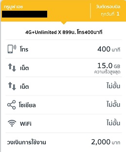 ปรากฎว่าโปรเป็น 4G+ unlimited X ราคา 899 จริง แต่บน app ไม่มีที่บอกว่าใช้ได้ไม่จำกัด ขึ้นแค่ใช้ได้ 15 GB ตามนี้