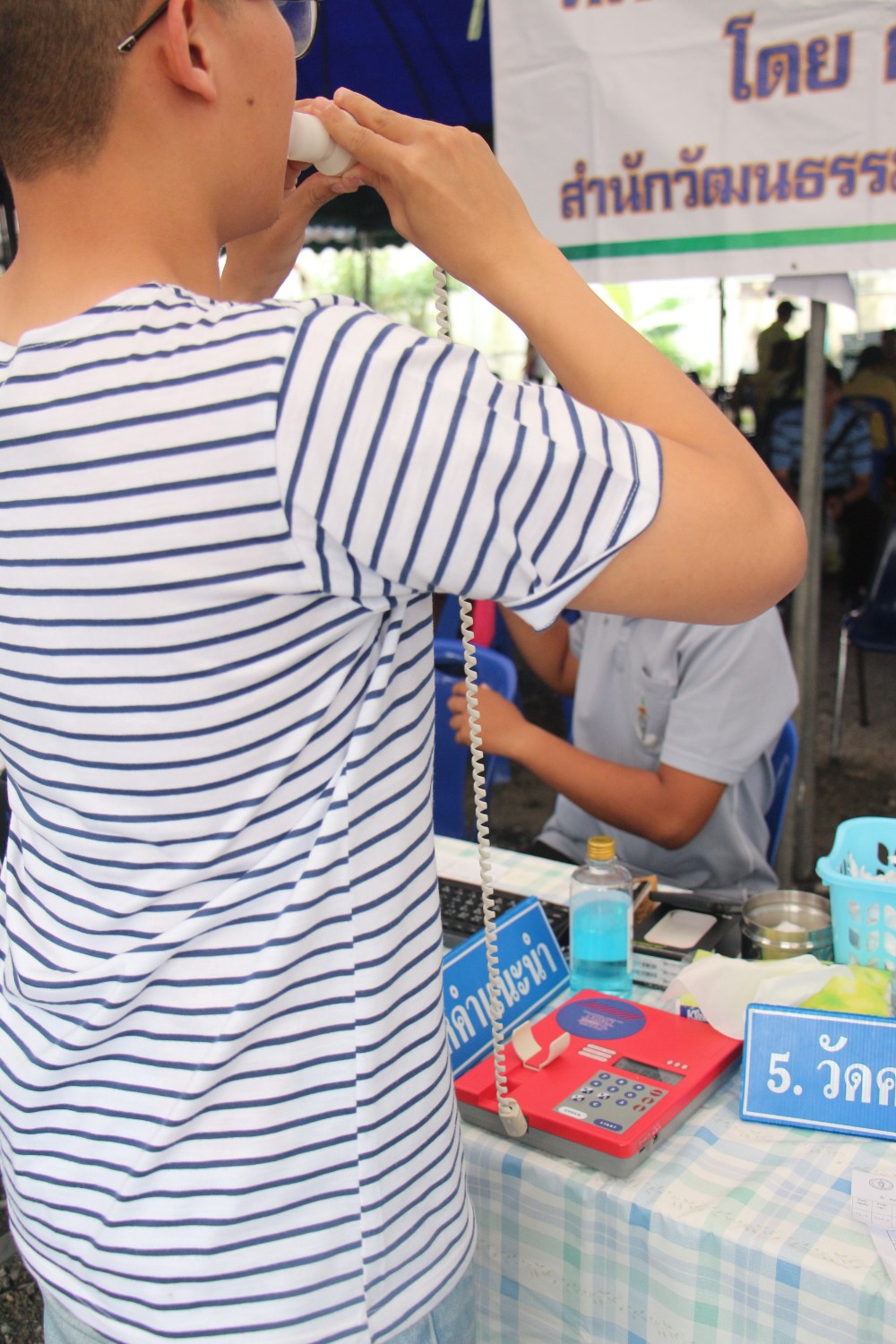(ไม่ต้องกลัวว่าจะใช้ที่เป่าอันเดียวกับคนอื่นนะครับ เพราะว่าในส่วนของปากเป่านั้นใช้ได้ครั้งเดียว ทางเจ้าหน้าที่เค้าเปลี่ยนให้ตลอดเพื่อกันโรคติดต่อ)