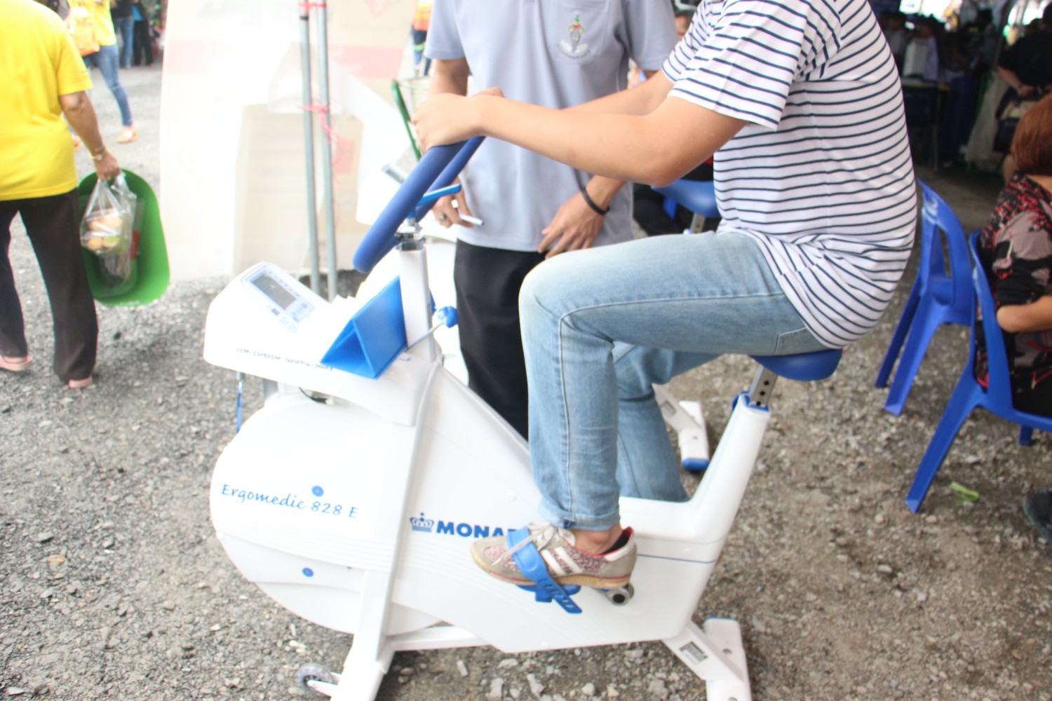 ซึ่งในการทดสอบครั้งนี้ จะใช้เครื่องปั่นจักรยาน เป็นตัววัด โดยพี่เจ้าหน้าที่จะให้ผมปั่นจักรยานในอัตราเร็วที่กำหนดเป็นเวลา 6 นาที