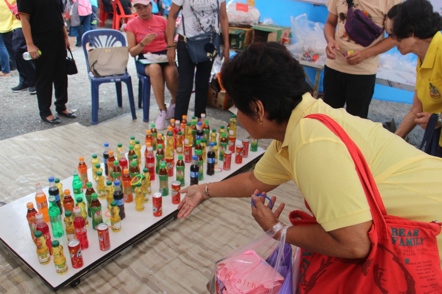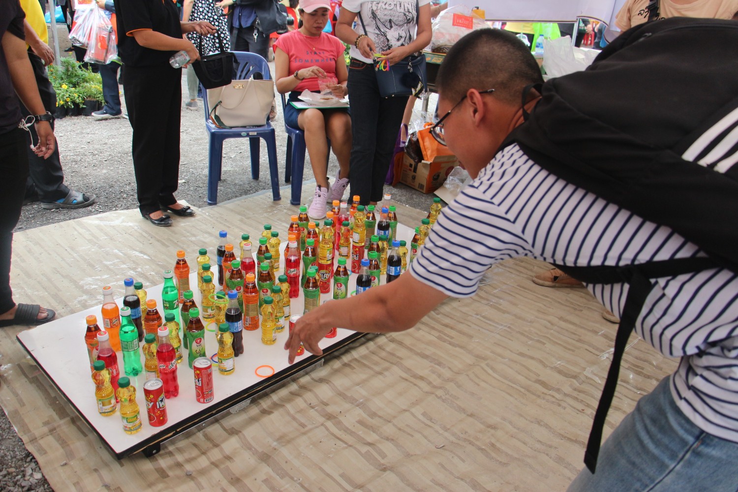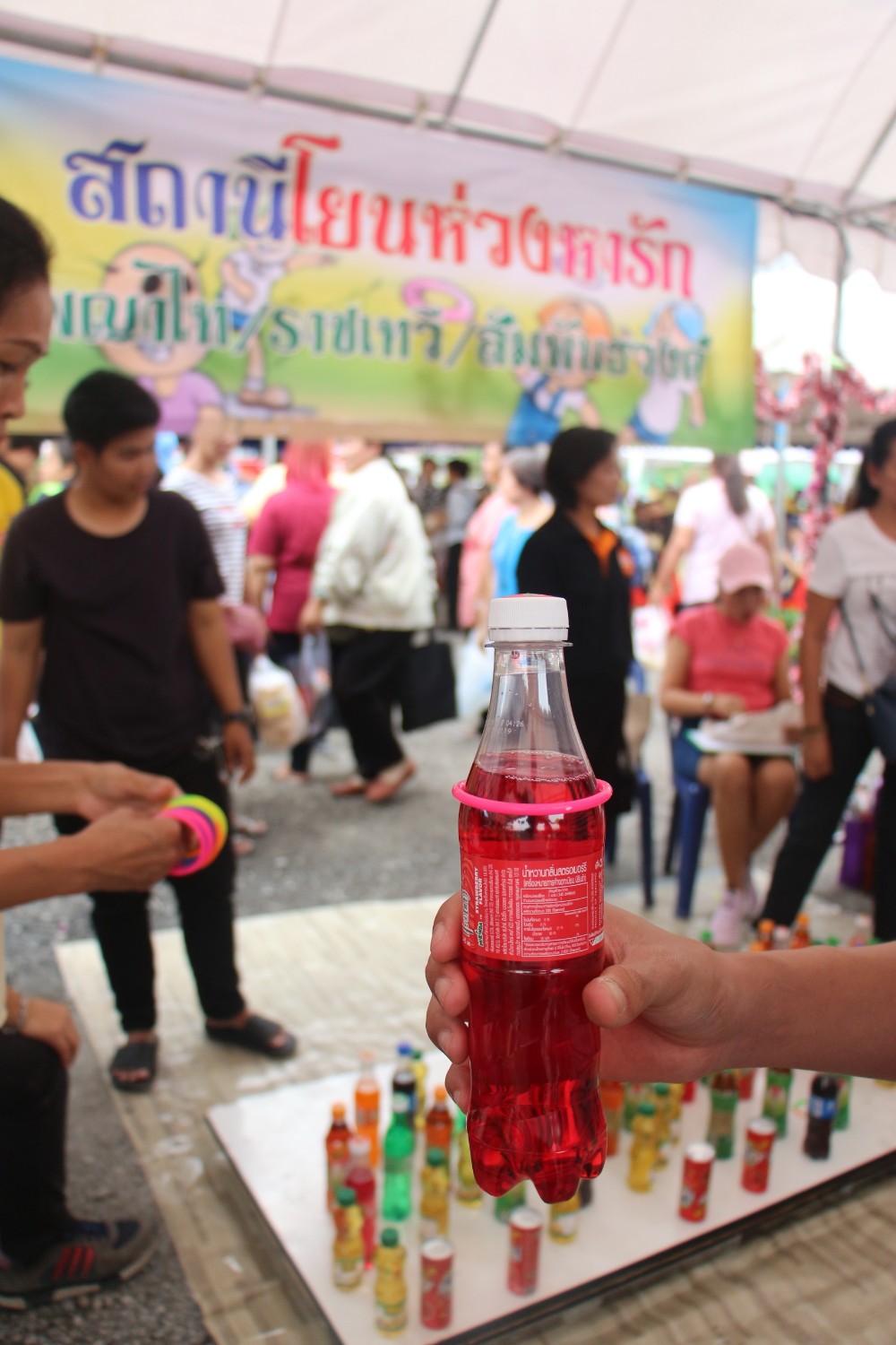 ให้เราโยนให้ลงขวดน้ำ ได้อันไหน ก็เอากลับไปได้เลยครับ