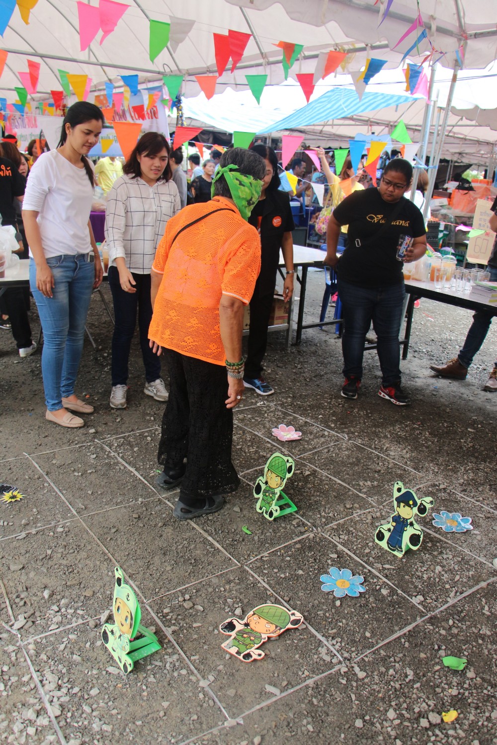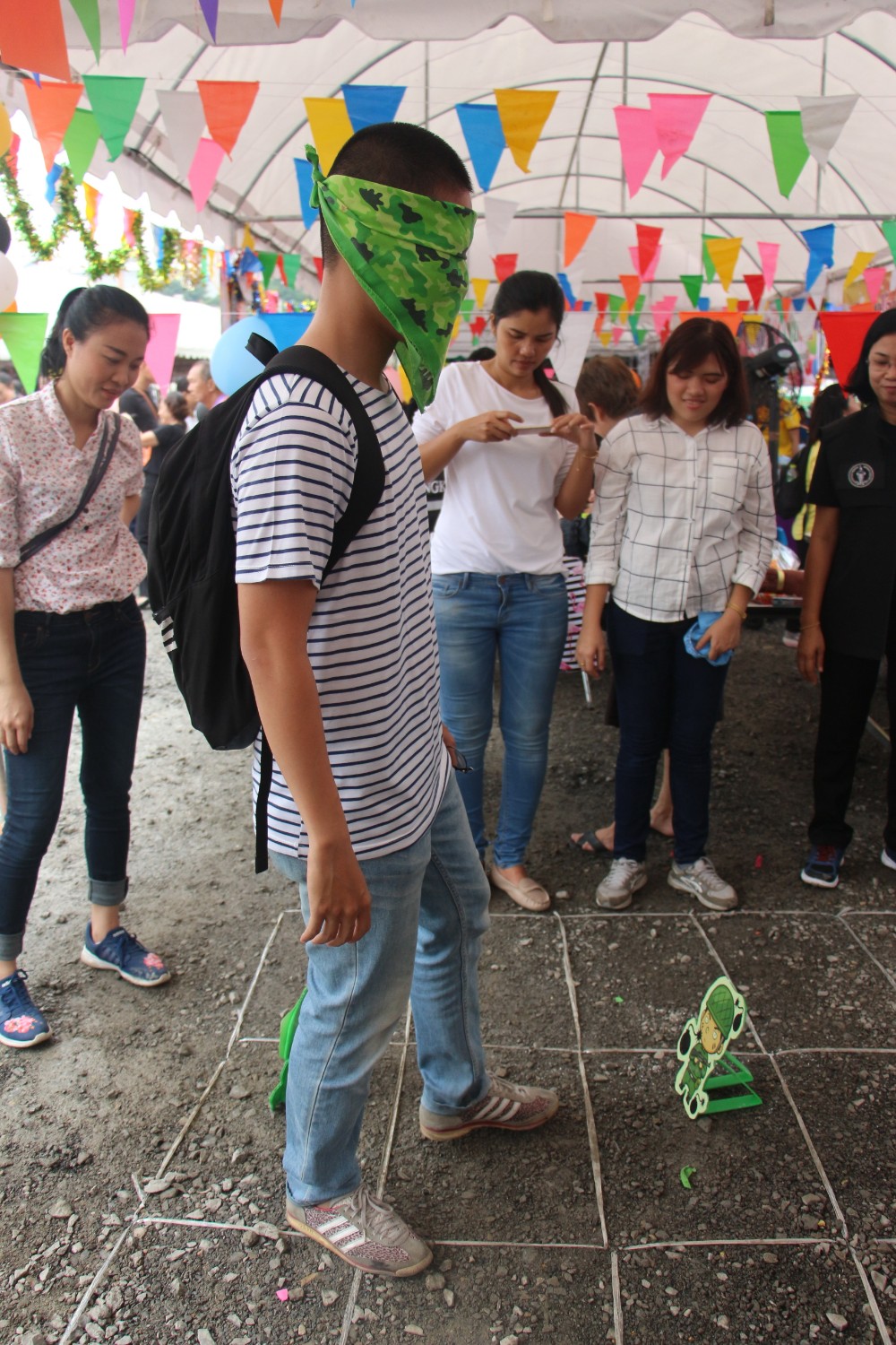 หลังจากนั้นพี่เค้าก็จะบอกให้เราเดินไปให้ถึงเส้นชัยให้ได้ โดยไม่โดนกับระเบิด ถ้าโดนกับระเบิดจะถือว่าแพ้