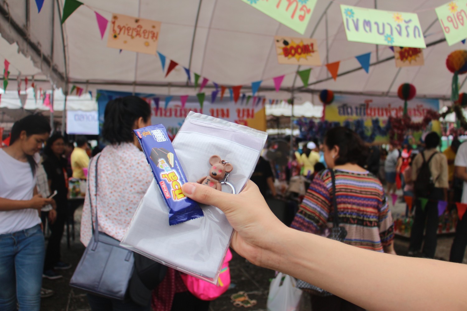(เสียดายไม่ได้เอากระเป๋าผ้ามา ก็เลยอดได้ปักชื่อเท่ๆเลยครับ 55)